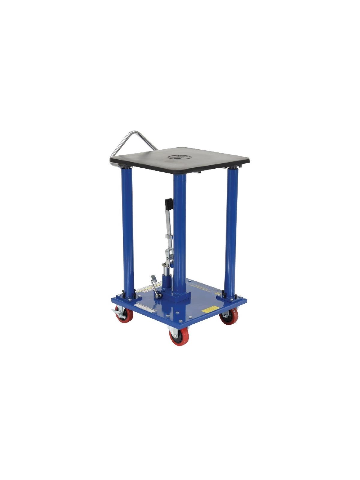 Hydraulic center post lifts tabletop with rigidity. Models with corner posts are telescoping to help stabilize and fully support the load during operation. Rolls smoothly on durable heavy duty casters. FOB Shipping Point.