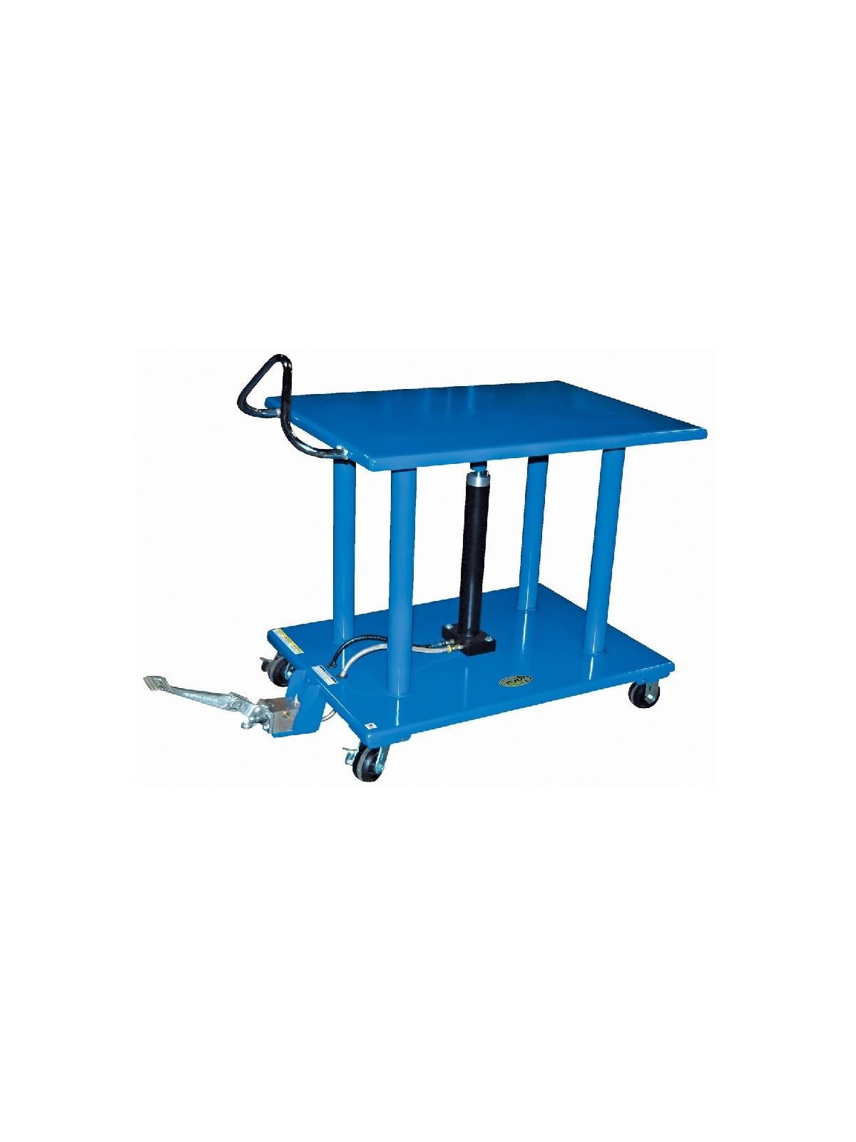 Hydraulic center post lifts tabletop with rigidity. Models with corner posts are telescoping to help stabilize and fully support the load during operation. Rolls smoothly on durable heavy duty casters. FOB Shipping Point.