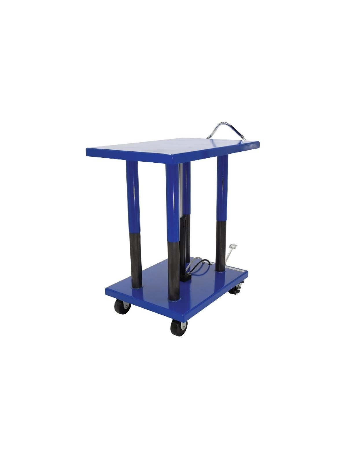 Hydraulic center post lifts tabletop with rigidity. Models with corner posts are telescoping to help stabilize and fully support the load during operation. Rolls smoothly on durable heavy duty casters. FOB Shipping Point.