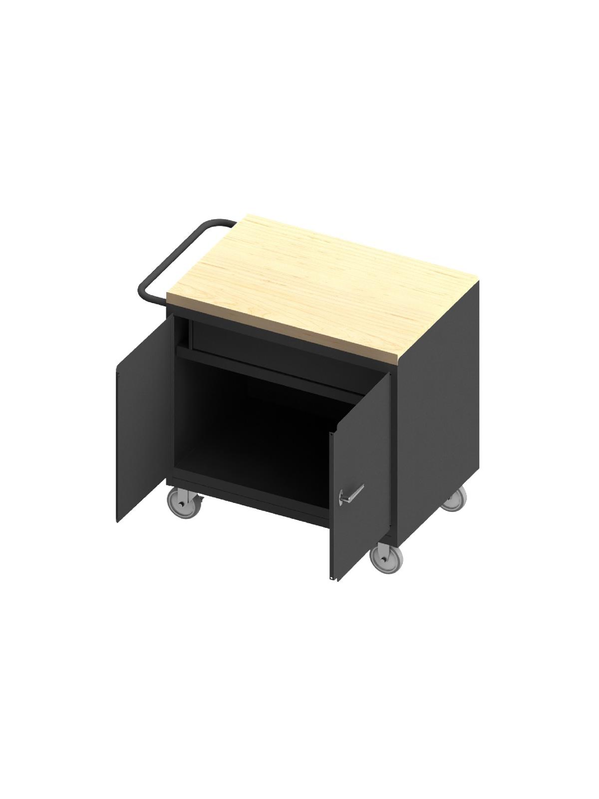 Bench cabinets are constructed of 14 gauge steel. Convenient sturdy work surface with back and end stops on the work surface prevents parts from falling off during transport (MT units not included). Tubular handle for easy maneuverability. Cabinet doors have a 3 point locking system with 4 keys. Rolls smoothly on 5" polyurethane bolt-on casters, (2) swivel with side brakes and (2) rigid. 36"W model has 1,200 lbs. capacity. 48"W model has 2,000 lbs. capacity and includes a floor lock to keep the unit in place while you work. FOB Shipping Point.