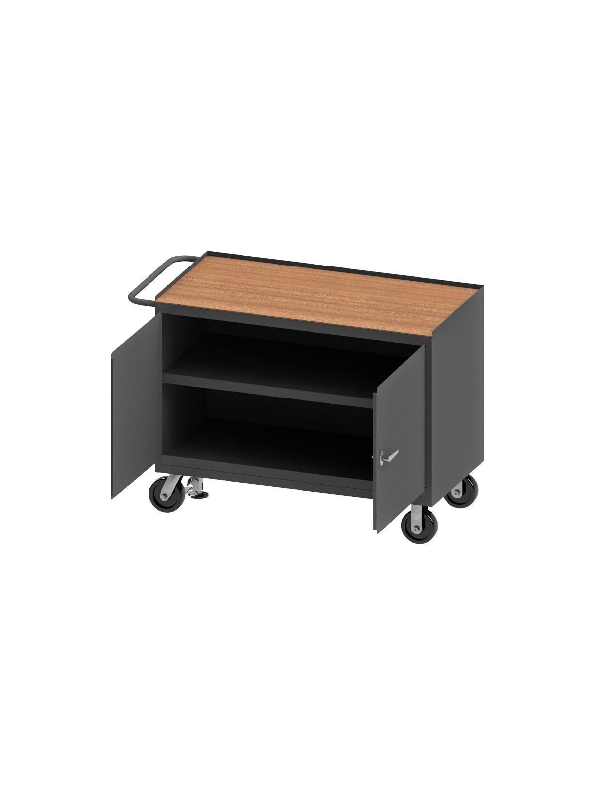 Bench cabinets are constructed of 14 gauge steel. Convenient sturdy work surface with back and end stops on the work surface prevents parts from falling off during transport (MT units not included). Tubular handle for easy maneuverability. Cabinet doors have a 3 point locking system with 4 keys. Rolls smoothly on 5" polyurethane bolt-on casters, (2) swivel with side brakes and (2) rigid. 36"W model has 1,200 lbs. capacity. 48"W model has 2,000 lbs. capacity and includes a floor lock to keep the unit in place while you work. FOB Shipping Point.