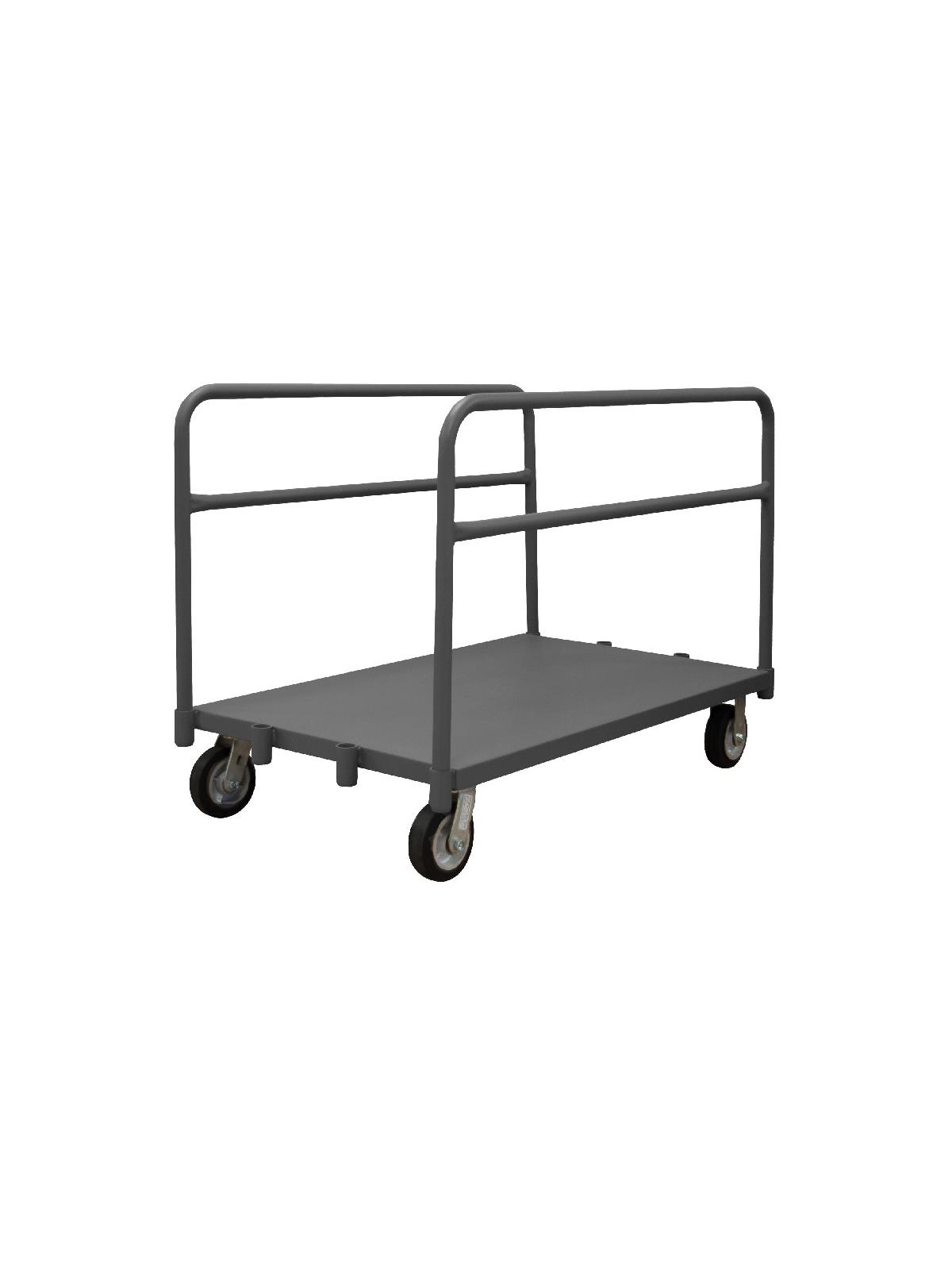 Easy to access and pick up on-board product. Create multiple opening sizes by adjusting dividers. All casters: 2 rigid, 2 swivel. Allows for the storage and transportation of various sizes of panels and product. Gray, textured, powder coat finish. FOB Shipping Point.