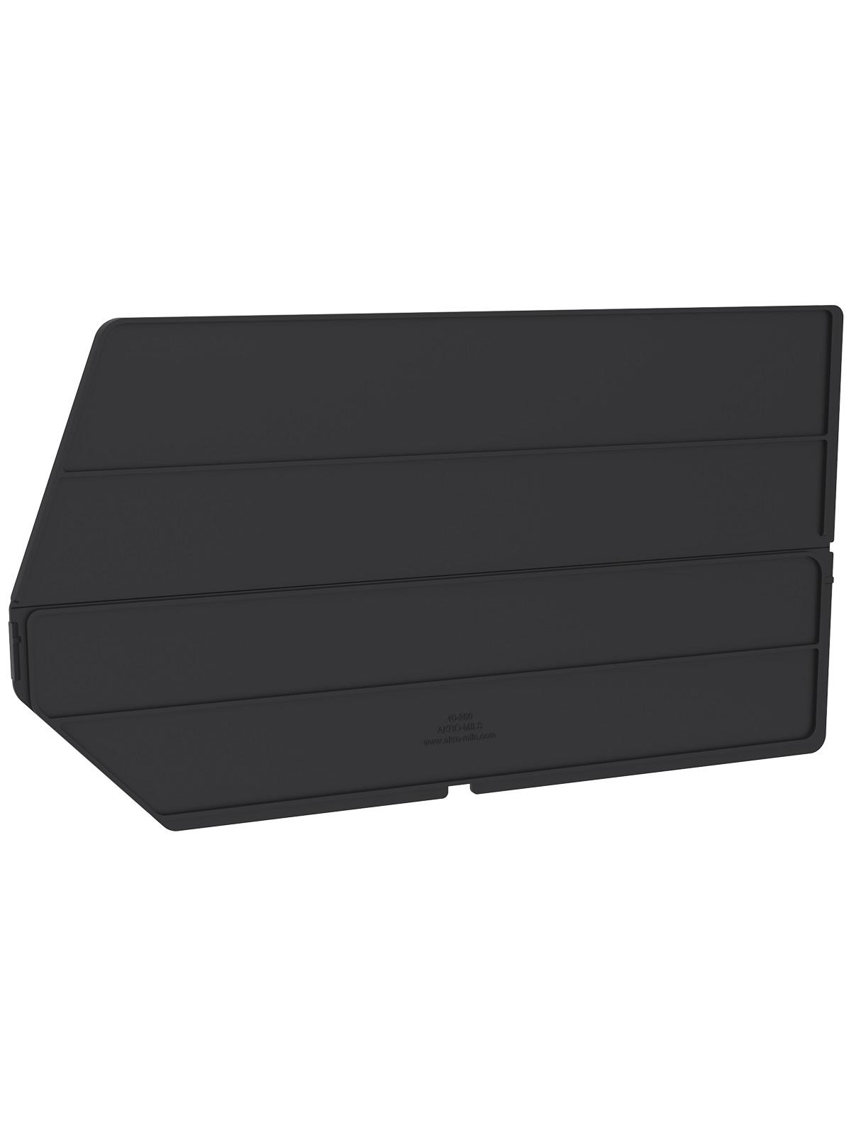 Dividers slip into grooves on the inside of the bins (sold separately). Lengthwise dividers keep items separated in the bin and are available in black. Cross dividers divide bins widthwise and are black. FOB Shipping Point.