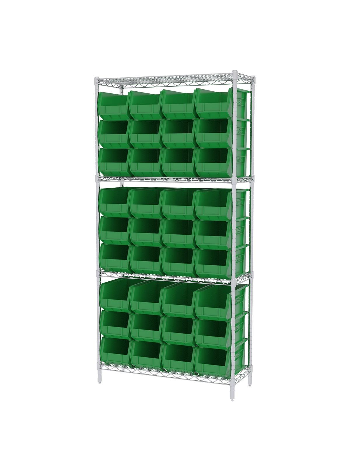 A wide variety of shelf configurations are possible with three sizes of shelving available. Durable AkroBins® feature a curved bottom hopper front, to enable easy access of small parts. Bins available in Blue, Red, Yellow, Stone, Green, or Semi-Clear. FOB Shipping Point.