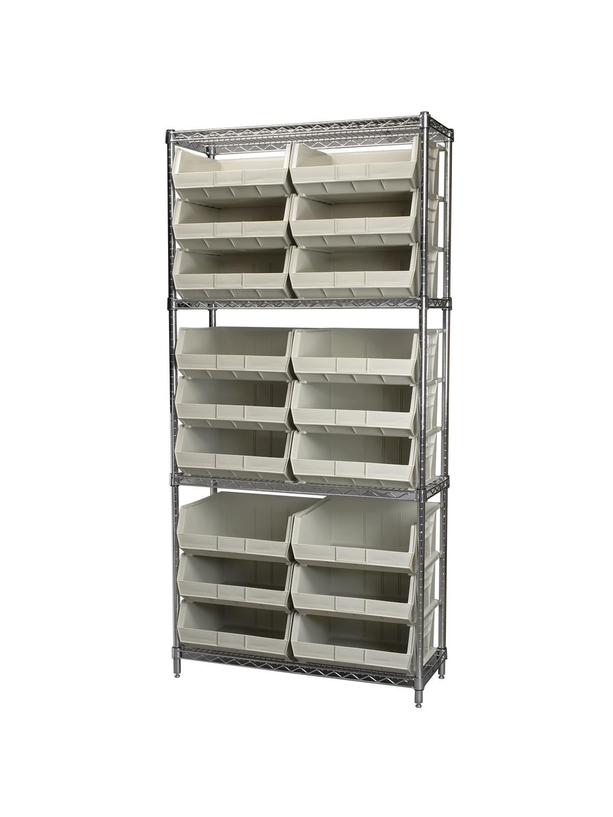 A wide variety of shelf configurations are possible with three sizes of shelving available. Durable AkroBins® feature a curved bottom hopper front, to enable easy access of small parts. Bins available in Blue, Red, Yellow, Stone, Green, or Semi-Clear. FOB Shipping Point.
