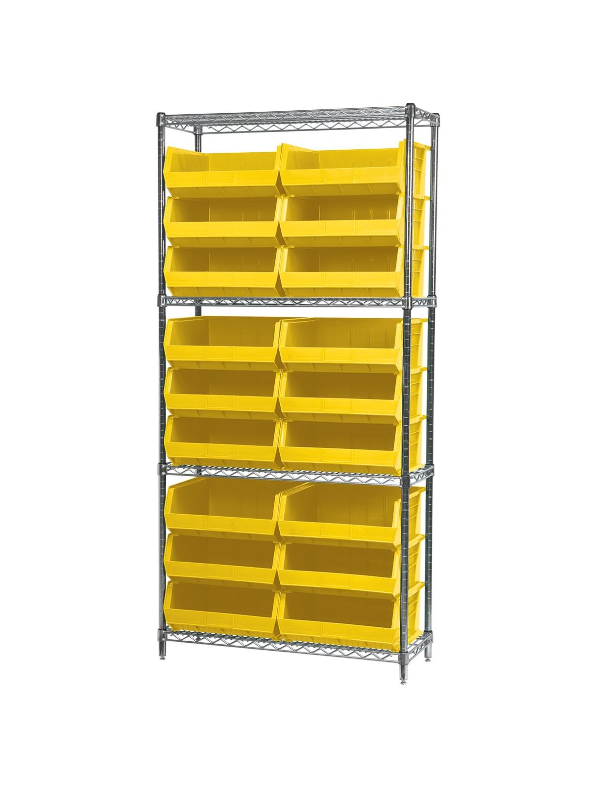 A wide variety of shelf configurations are possible with three sizes of shelving available. Durable AkroBins® feature a curved bottom hopper front, to enable easy access of small parts. Bins available in Blue, Red, Yellow, Stone, Green, or Semi-Clear. FOB Shipping Point.