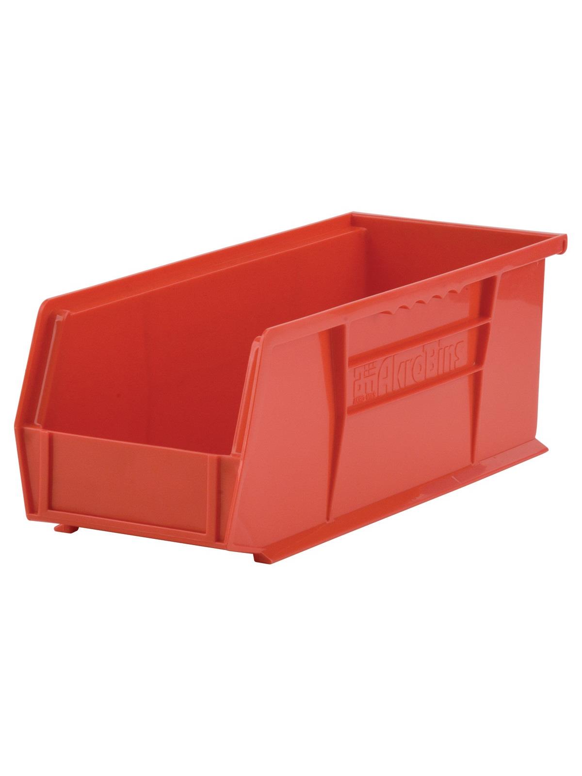 AkroBins are heavy-duty and securely stack on top of each other, sit on shelving, and hang from Akro-Mils racks, panels, rails and carts. Unaffected by weak acids and alkalis the sturdy one piece construction is water, rust and corrosion-proof. Finger grip allows for easy handling. Large label slot for easy identification of contents. Autoclavable up to 250° F. Guaranteed not to crack or break under normal load conditions as stated in the 1-year limited warranty. Optional dividers and labels available, see Related Items tab. AkroBins available in Red, Yellow, Blue, Green, Black, Stone, and Semi-Clear. FOB Shipping Point.