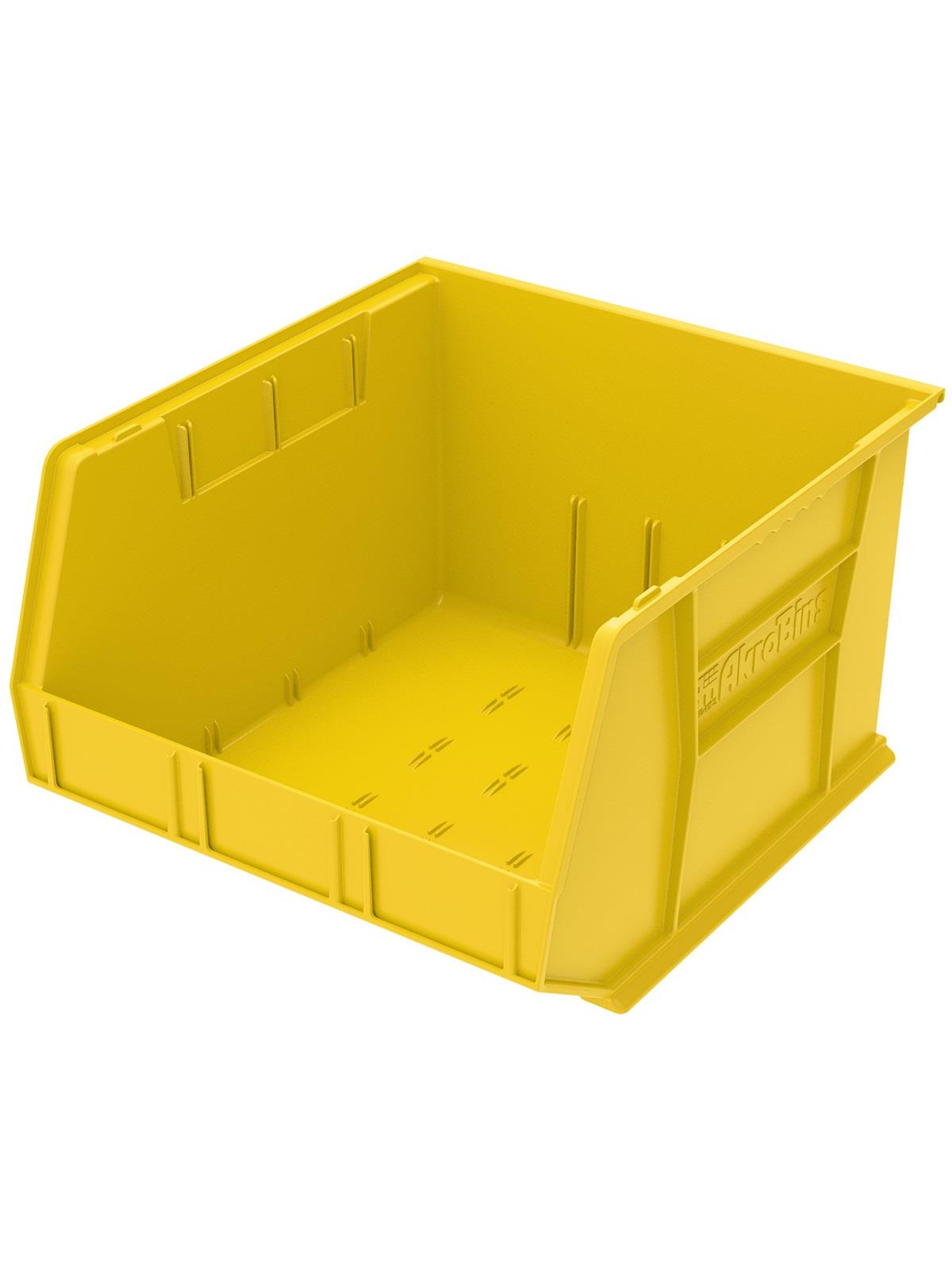 AkroBins are heavy-duty and securely stack on top of each other, sit on shelving, and hang from Akro-Mils racks, panels, rails and carts. Unaffected by weak acids and alkalis the sturdy one piece construction is water, rust and corrosion-proof. Finger grip allows for easy handling. Large label slot for easy identification of contents. Autoclavable up to 250° F. Guaranteed not to crack or break under normal load conditions as stated in the 1-year limited warranty. Optional dividers and labels available, see Related Items tab. AkroBins available in Red, Yellow, Blue, Green, Black, Stone, and Semi-Clear. FOB Shipping Point.