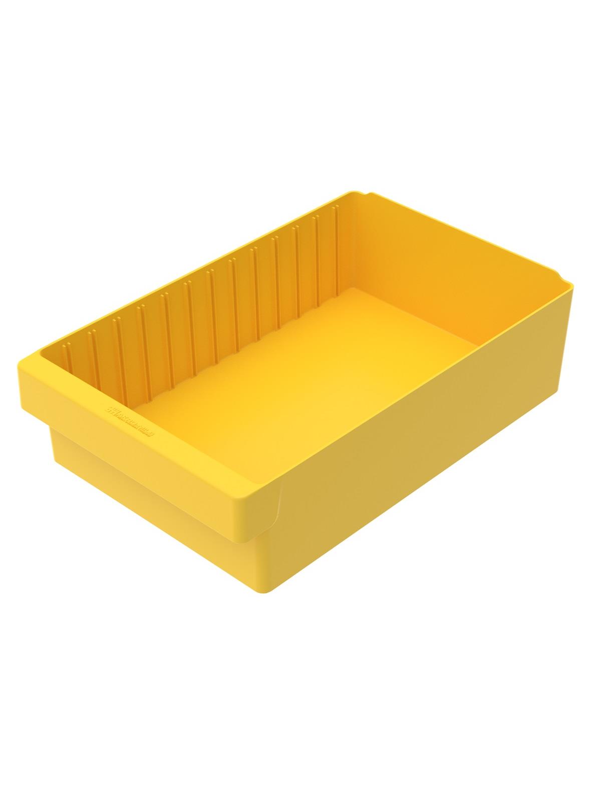 Offered in 12" or 18" depths to work with compatible shelving. Easy to label and color code inventory for quick identification of parts and supplies. Drawers can be stacked to optimize space. Wide front handle for easy gripping when AkroDrawers are loaded or contain heavy contents. Can be used with available shelving, racks, mobile carts or can be used by themselves. Sturdy back stop tab ensures AkroDrawers can hang securely from shelves. Dividers are available to keep contents neatly separated in drawers. Available in Blue, Gray, Yellow, Red and Clear - Minimum order required. FOB Shipping Point.