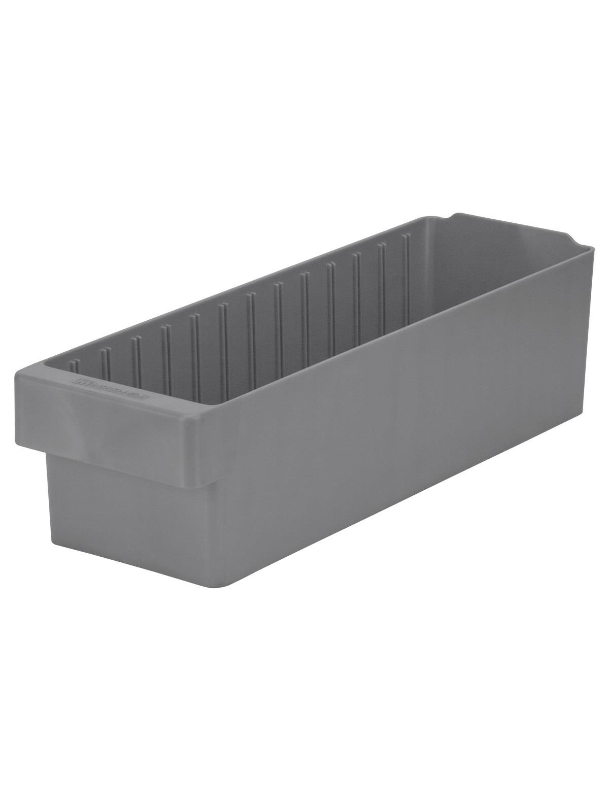 Offered in 12" or 18" depths to work with compatible shelving. Easy to label and color code inventory for quick identification of parts and supplies. Drawers can be stacked to optimize space. Wide front handle for easy gripping when AkroDrawers are loaded or contain heavy contents. Can be used with available shelving, racks, mobile carts or can be used by themselves. Sturdy back stop tab ensures AkroDrawers can hang securely from shelves. Dividers are available to keep contents neatly separated in drawers. Available in Blue, Gray, Yellow, Red and Clear - Minimum order required. FOB Shipping Point.