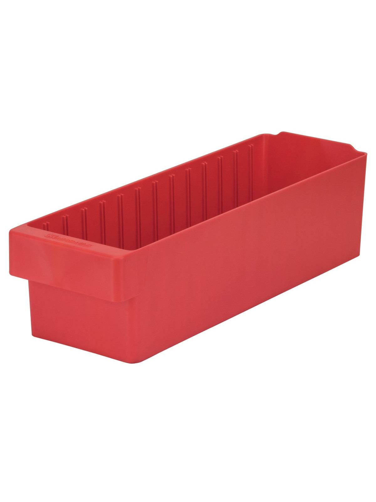 Offered in 12" or 18" depths to work with compatible shelving. Easy to label and color code inventory for quick identification of parts and supplies. Drawers can be stacked to optimize space. Wide front handle for easy gripping when AkroDrawers are loaded or contain heavy contents. Can be used with available shelving, racks, mobile carts or can be used by themselves. Sturdy back stop tab ensures AkroDrawers can hang securely from shelves. Dividers are available to keep contents neatly separated in drawers. Available in Blue, Gray, Yellow, Red and Clear - Minimum order required. FOB Shipping Point.