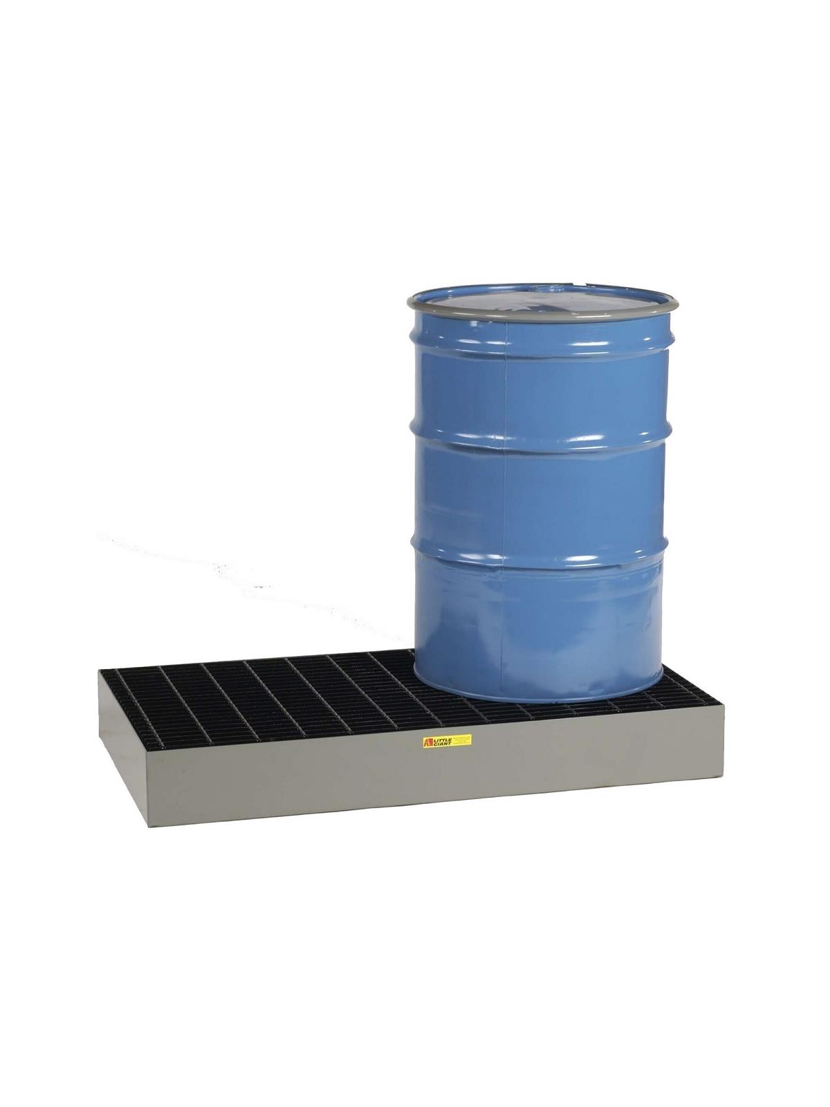 Heavy gauge steel construction for storage of materials that are not compatible with plastic. Sumps and ramps have durable powder coated finish. Welded bar grating can be removed for cleaning. Fork Liftable Ramp optional. FOB Shipping Point.