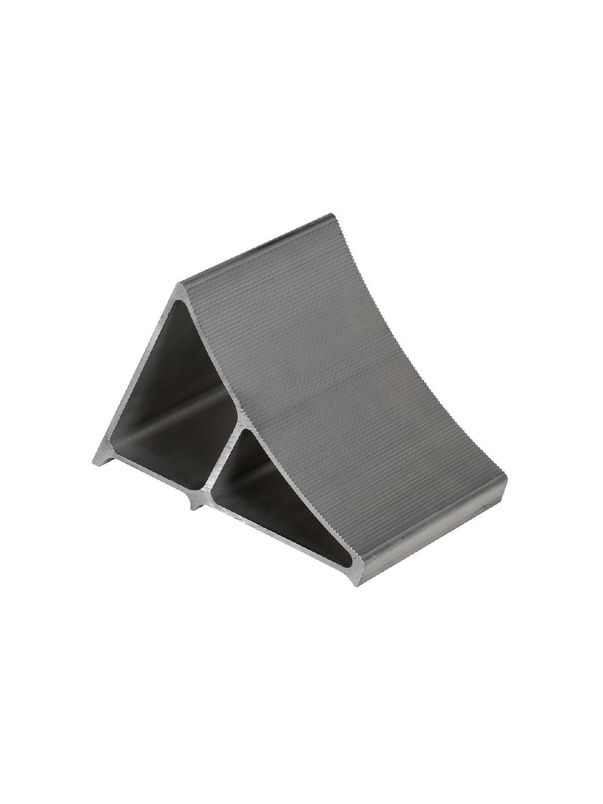 Constructed of extruded lightweight aluminum that is easy to handle. Features a serrated top to grip the tire and a triple edged bottom to grip the ground. Chock size is 7 x 8 x 11-3/4". FOB Shipping Point.