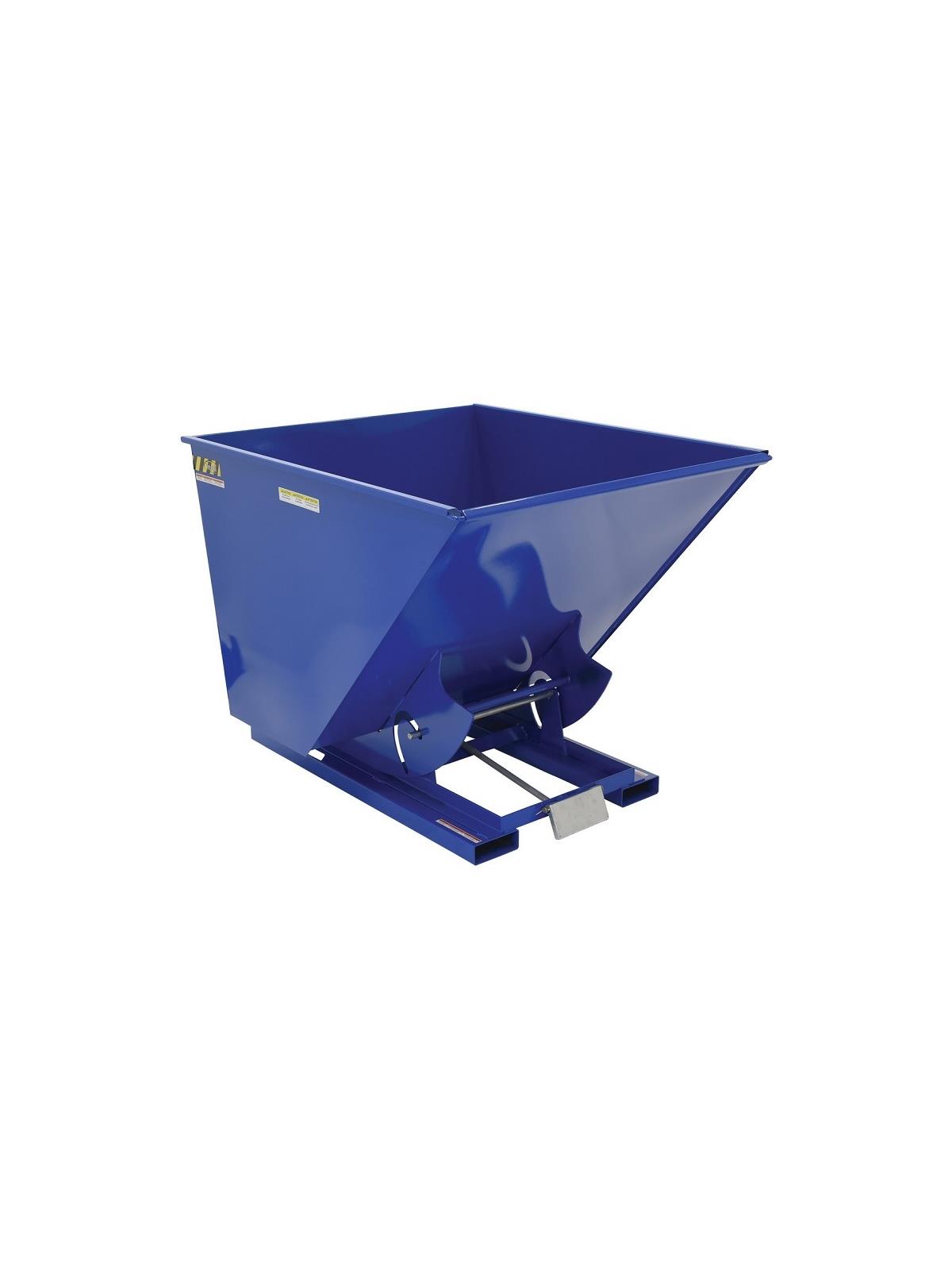 This bumper release hopper dumps as soon as the bumper is pushed. This style also returns to the locked position automatically after it dumps. A safety lock is standard on both styles to prevent accidental dumping. A safety restraint is provided to secure the hopper to the forklift. Fork pockets measure 7 1/2" x 2 1/2". Vestil self-dumping hoppers facilitate compliance with OSHA General Industry rule 29 CFR 1910.178(m)(5)(iii) by allowing lift truck operators to remain at the controls of their truck throughout the dumping process. FOB Shipping Point.
