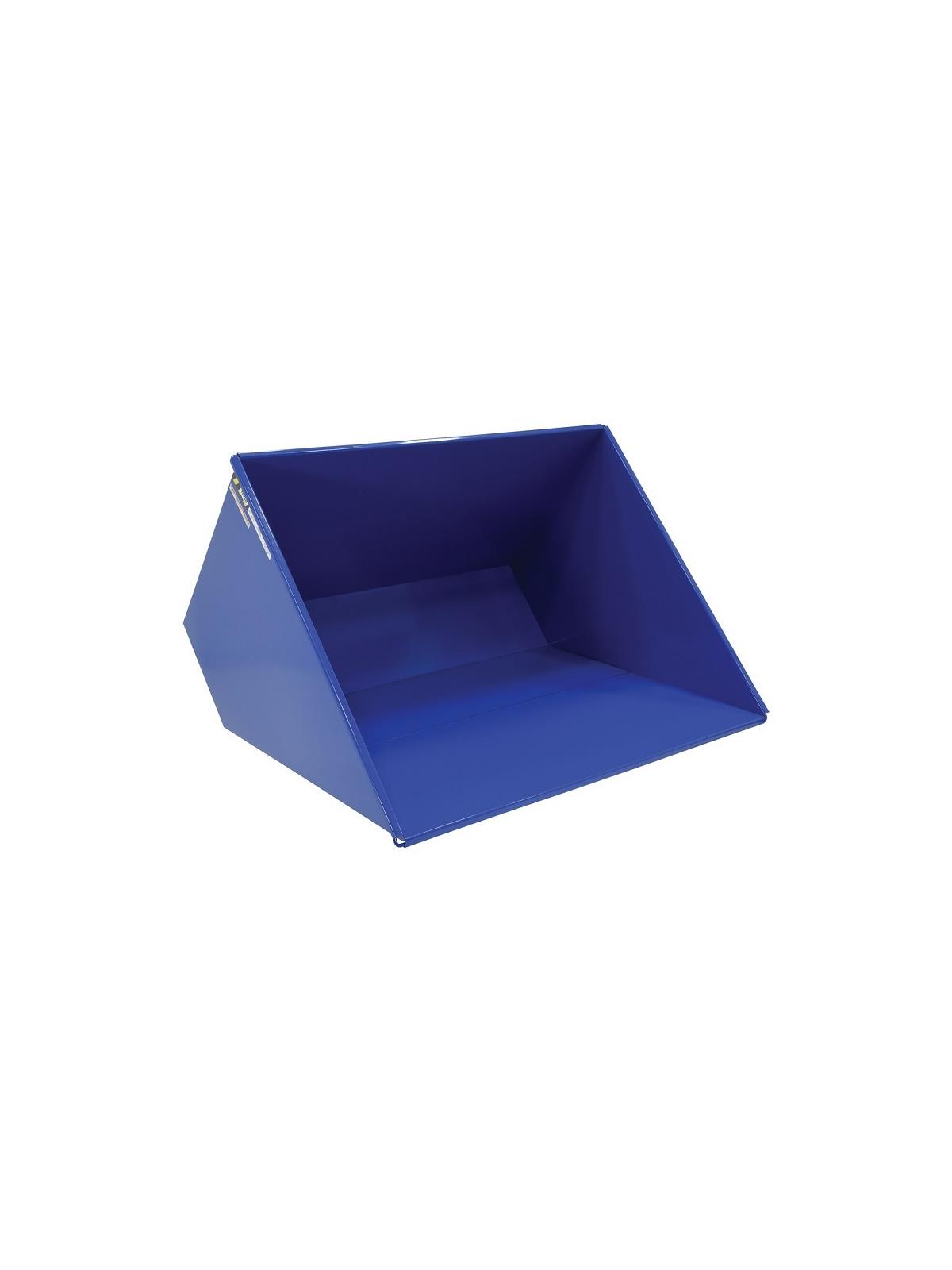 This bumper release hopper dumps as soon as the bumper is pushed. This style also returns to the locked position automatically after it dumps. A safety lock is standard on both styles to prevent accidental dumping. A safety restraint is provided to secure the hopper to the forklift. Fork pockets measure 7 1/2" x 2 1/2". Vestil self-dumping hoppers facilitate compliance with OSHA General Industry rule 29 CFR 1910.178(m)(5)(iii) by allowing lift truck operators to remain at the controls of their truck throughout the dumping process. FOB Shipping Point.