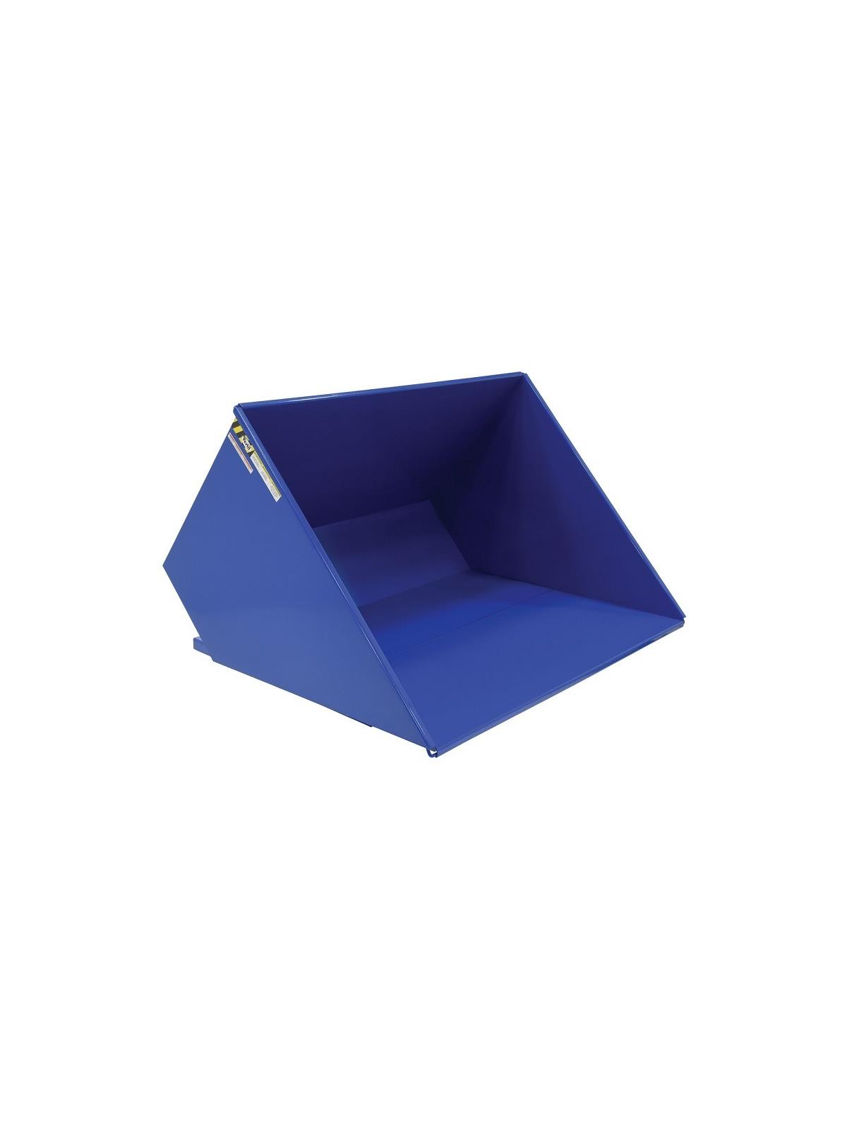 This bumper release hopper dumps as soon as the bumper is pushed. This style also returns to the locked position automatically after it dumps. A safety lock is standard on both styles to prevent accidental dumping. A safety restraint is provided to secure the hopper to the forklift. Fork pockets measure 7 1/2" x 2 1/2". Vestil self-dumping hoppers facilitate compliance with OSHA General Industry rule 29 CFR 1910.178(m)(5)(iii) by allowing lift truck operators to remain at the controls of their truck throughout the dumping process. FOB Shipping Point.