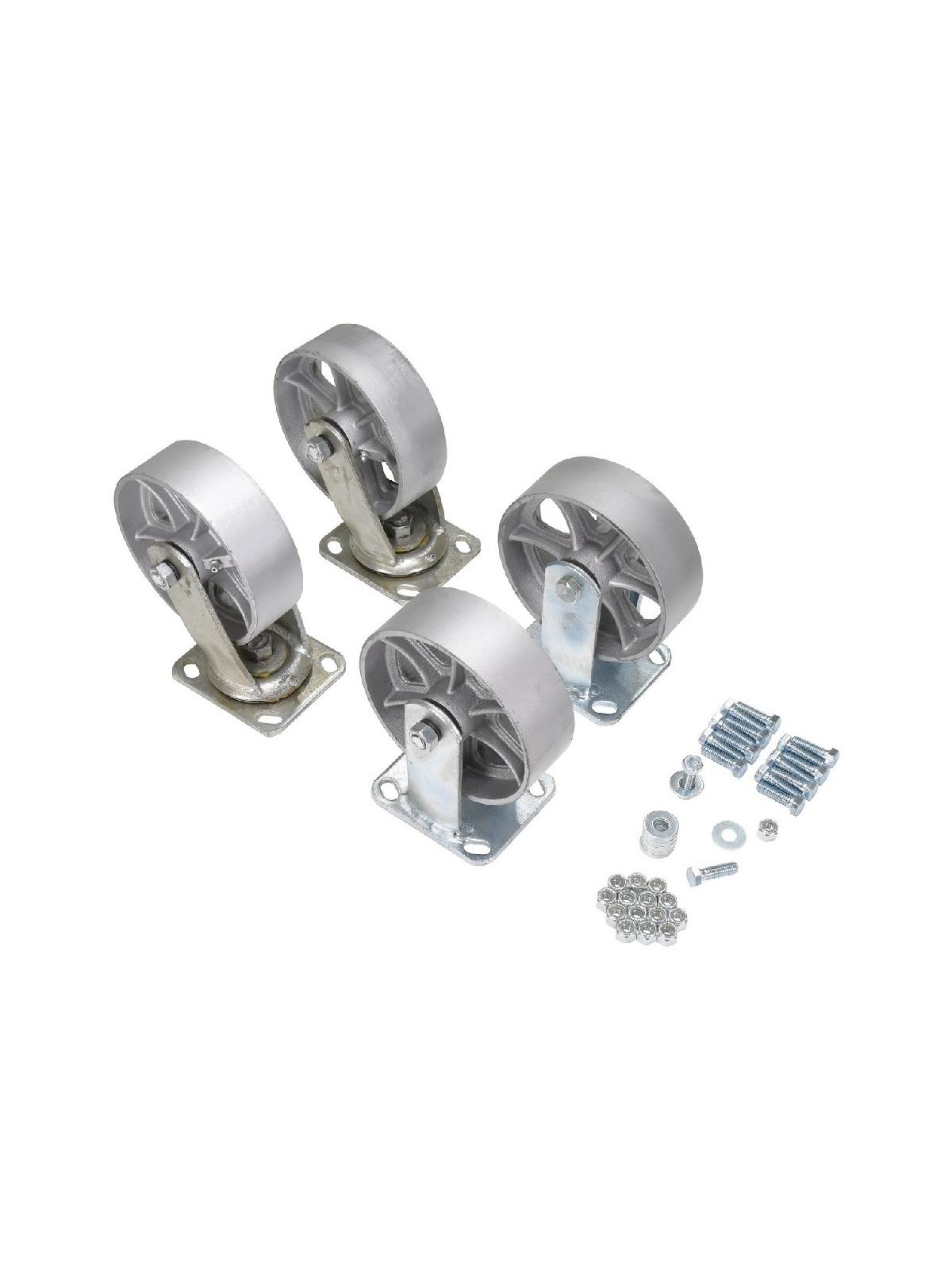 For use with Bumper Release Steel Hoppers. Transport loads with portable hoppers. The maximum weight capacity is the lowest weight capacity of either the hopper or the caster. Casters are shipped uninstalled to prevent freight damage. Sets include (2) rigid, and (2) swivel casters. Casters are bolted-on by utilizing the factory stamped hole in the fork tubes. FOB Shipping Point.