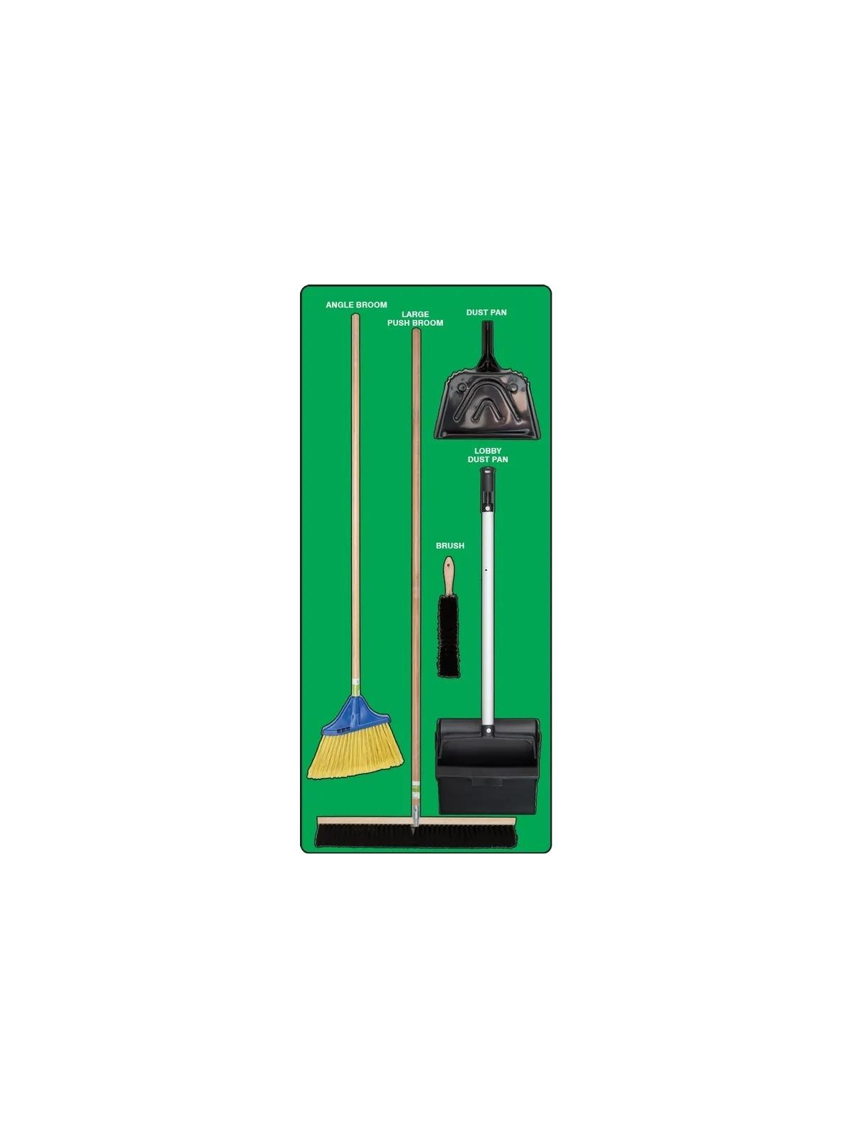 Keep general maintenance and cleaning tools organized, neat, and always ready for use. Minimize downtime searching for tools by keeping them in one centralized location. Available in a variety of materials to match your environment. Ultra Aluma-Lite™, Max-Duty Aluminum, and Accu-Shield™. 4 color options available with your choice of either black or white tool shadows. Ideal for non-food contact and general maintenance. Promotes tool accessibility at point of use benefits. Maximizes efficiency, organization and accessibility. Minimizes wasted travel time to supply rooms/closets. Provides easy and fast janitorial solutions without added physical stress. Provides an aesthetic assembly of tools. Shadow Board Dimensions: 68"H x 30"W. Features 1/2" rounded corners and 3/8" mounting holes. Boards include mounting hardware for tools. Some assembly required; Instruction and assembly hardware included. Due to size and/or weight, this product may need to ship LTL. FOB Shipping Point.