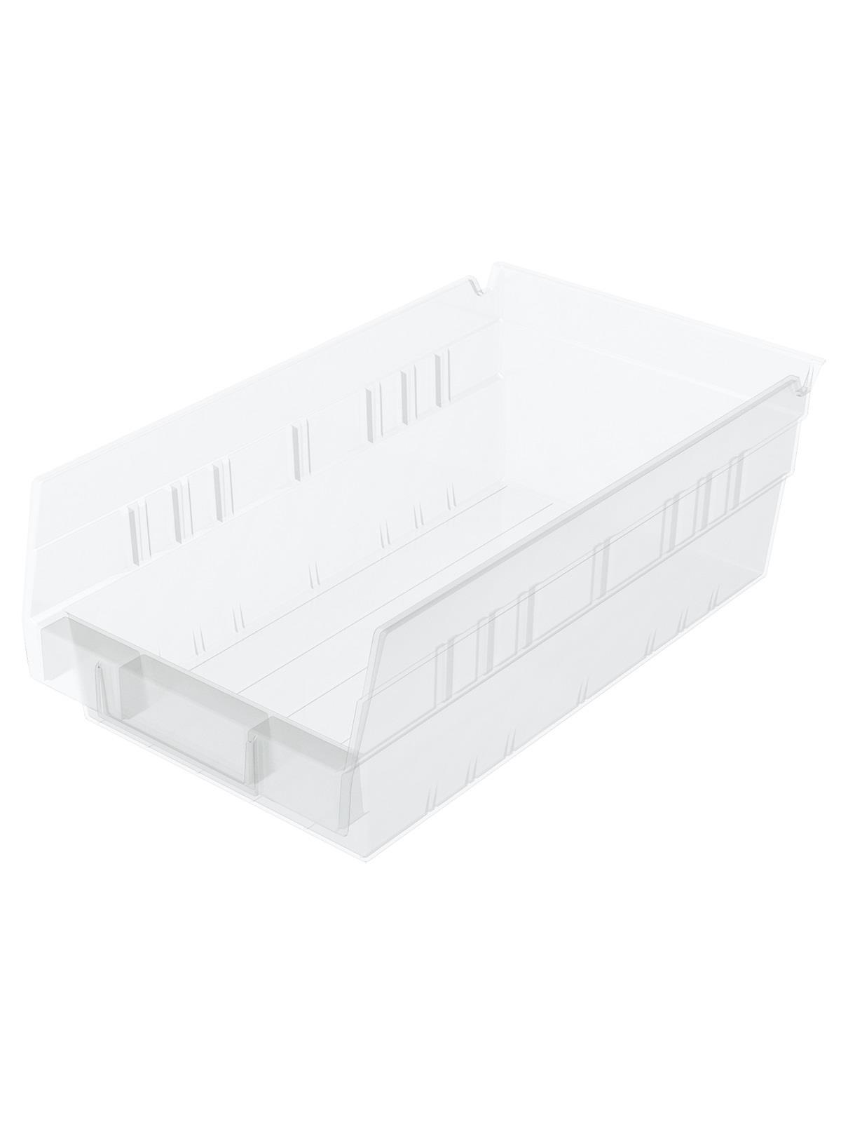4" Shelf Bins are the industry standard for quality, durability and value. Molded from durable polypropylene for easy identification of parts and supplies. Built-in rear hanglock allows bin to tilt out for complete access. Optional dividers available. FOB Shipping Point.