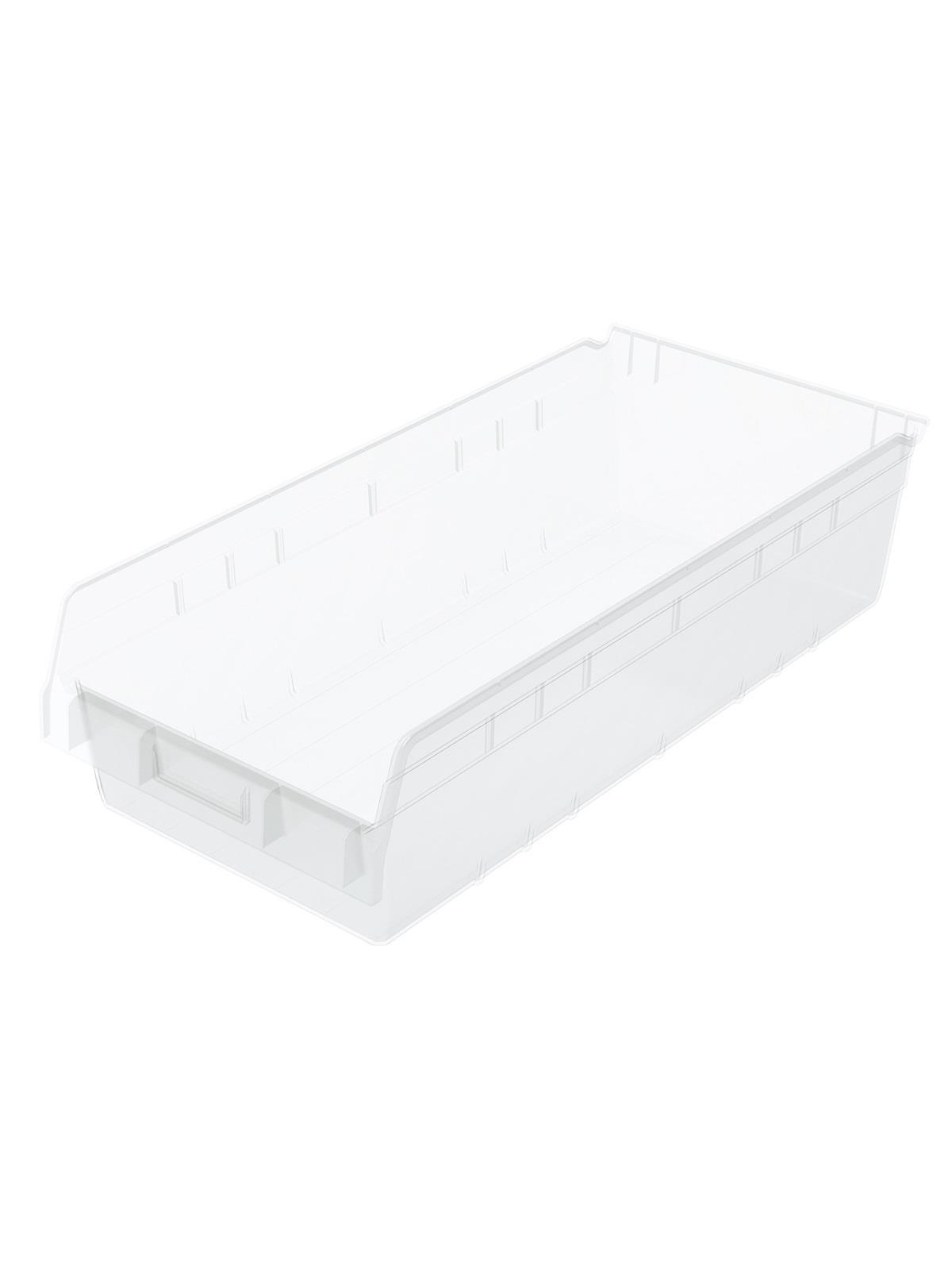 Clear 6" ShelfMax® Bins expand storage capacity up to 85% over standard 4" bins. Rolled top edge for added strength when filled to capacity. Durable clear polypropylene construction. Optional lids and dividers available. FOB Shipping Point.