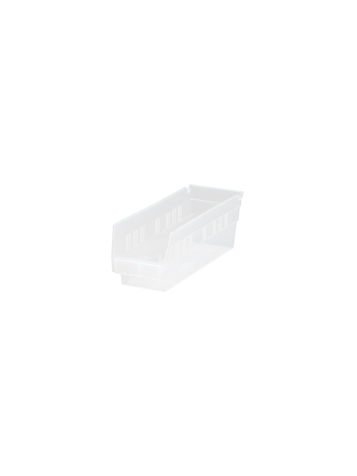 Tough, durable, high density shelf bins are the industry standard for quality. These tri-clear polypropylene bins feature a molded-in label holder, built-in rear hanglock which allows bins to tilt out for complete access when on shelving. A wide hopper front allows complete access to the contents of the bin. Edges are reinforced for added strength. They are designed for 12", 18" and 24" deep shelf units, racks or standard shelving. FOB Shipping Point.