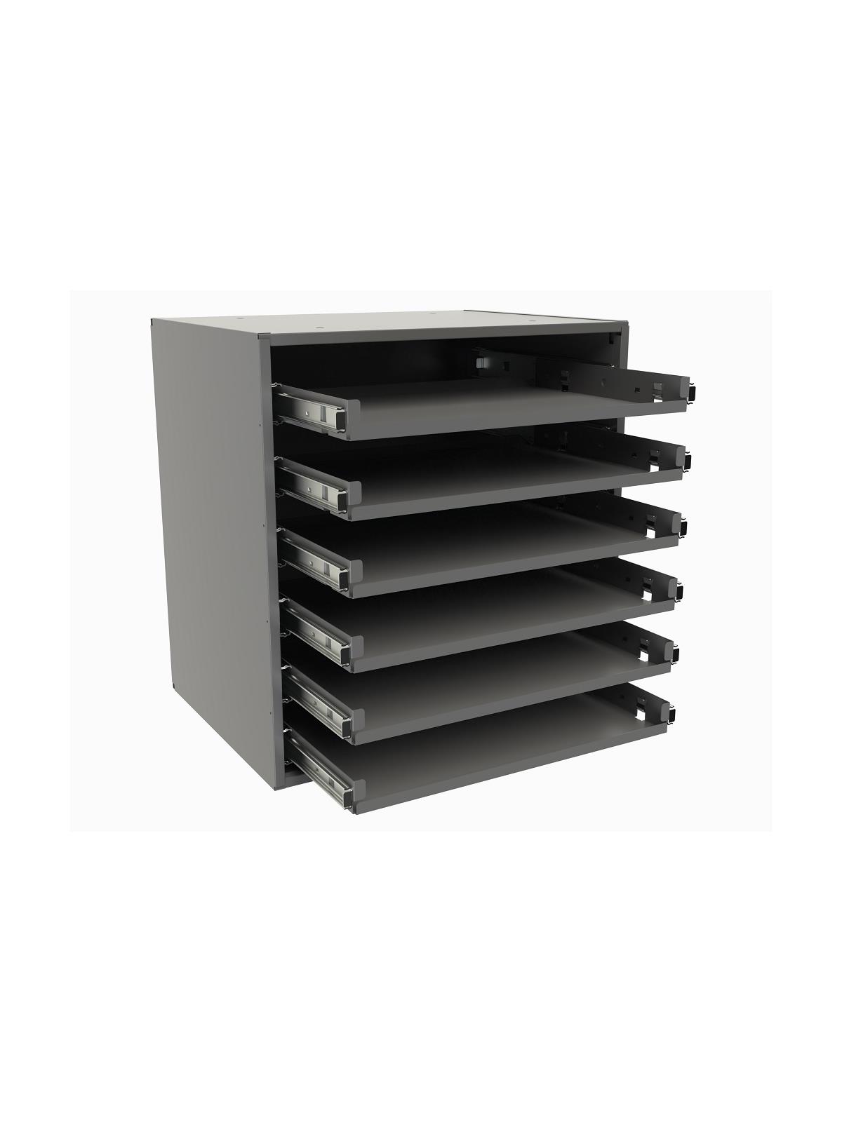 Efficient storage and organization for a variety of parts and components. Each compartment box interior is manufactured of polypropylene with scooped bottoms, both front and back for easy parts removal. Rugged steel, all-welded cabinets are reinforced for rigidity. Use on the workbench, counter, or carry to the job site with convenient thumb-grip handles. Easy Glide Slide Racks hold up to 40 lbs. per cradle. The Heavy Duty Bearing Slide Racks hold up to 75 lbs. per cradle. Finished in acid and rust resistant Gray powder coating. Order cabinets to accommodate 2, 4, or 6 boxes. Compartment boxes and bases sold separately, compartment boxes sold in case quantities. FOB Shipping Point.