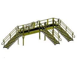 Crossover ladders allow workers a code compliant exit and egress plan within the building. This single kit of parts allows the crossover to be raised in increments of 2 inches up to 2 feet in height. The components in the crossover kit; railings, posts, and beams have been designed to meet OSHA standards and the stairs have been designed to meet IBC standards. The stairs in this kit of parts enables you to raise the crossover approximately three to four inches, if higher than this rise is required then a different set of stairs would be needed. Constructed with high-quality hot-dipped galvanized and powder coated steel, our customizable and configurable systems can be taken apart and put back together easily in a different location if needed and they're also designed, out of the box, to build a U-shaped, Z-shaped, L-shaped and I-shaped crossover based on your footprint-without extra parts or cost. FOB Shipping Point.