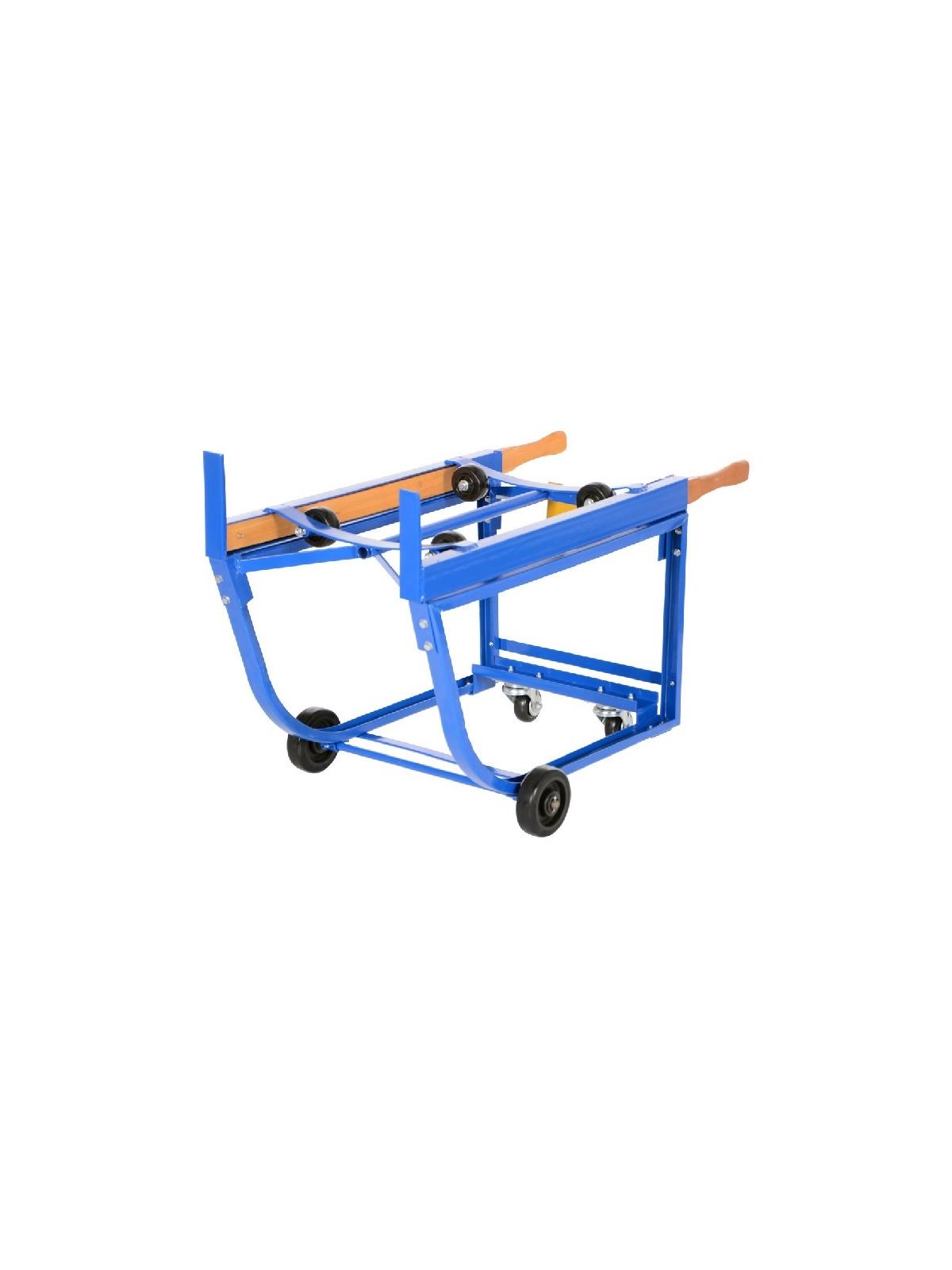 Practical design is easy to use and operate. Two retractable wooden handles are included for easy one-person operation. Steel STOPS also included for holding drum during tipping operation. Steel handle includes built-in bung nut wrenches as an extra feature. Includes 2 swivel, 2 rigid casters. Painted finish. Easy assembly. FOB Shipping Point.