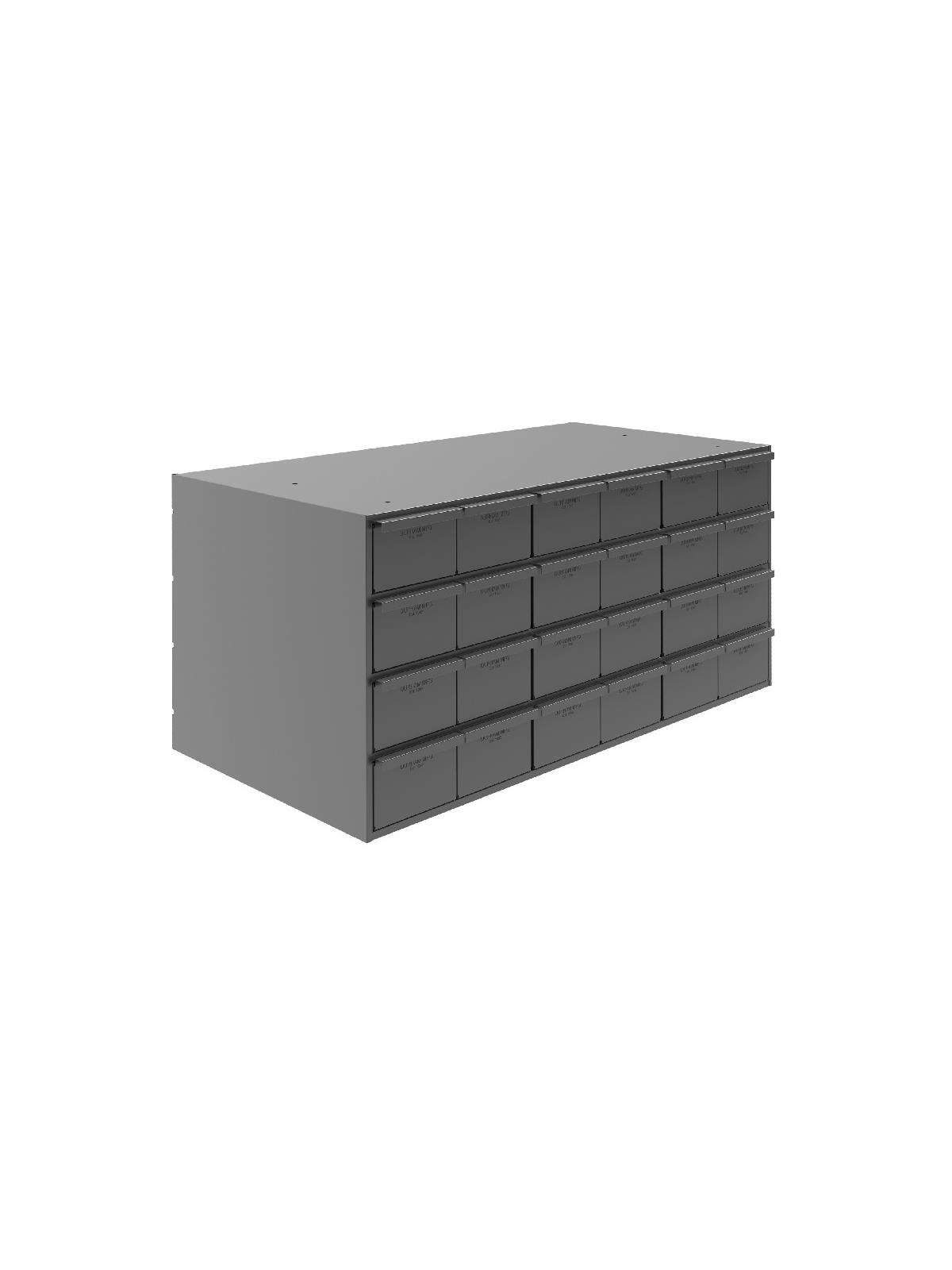 All-welded heavy-duty frame features vertical support for extra stacking strength. A positive stop mechanism prevents drawers from falling out. Drawers also feature double interlocked design for additional rigidity. Full-width handles for a firm grip. Each drawer complete with 2 adjustable dividers. Extra dividers sold below. Fits standard shelving. Finished in rust and acid resistant Gray powder coat. Fully assembled. FOB Shipping Point.