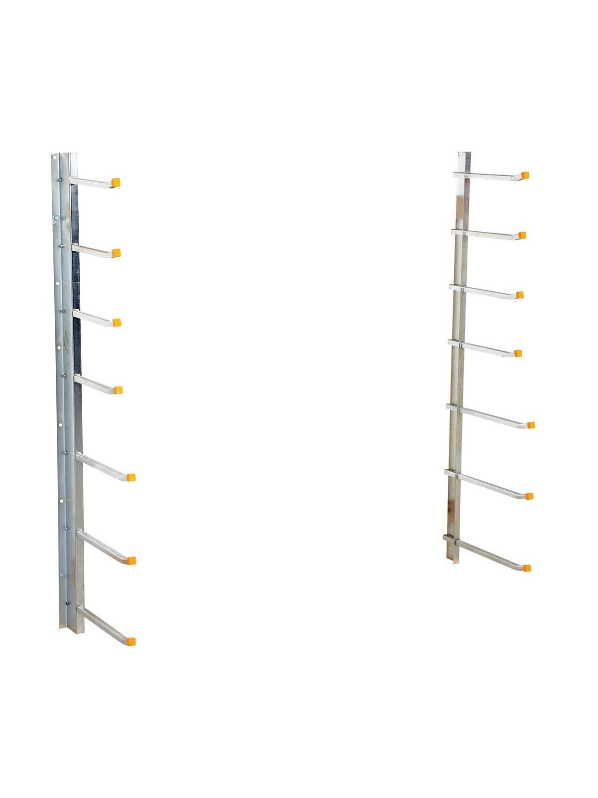 HSR-WM Series - Wall mounted dual 60”H. Supports have 3-18” arms and 4-15” arms. Uniform load capacity is 1,000 lbs. 18” arms have 9” height clearance and the 15” arms have 7.25” clearance. Bright zinc plating provides a long term, attractive appearance. Shipped KD with quick and convenient assembly.