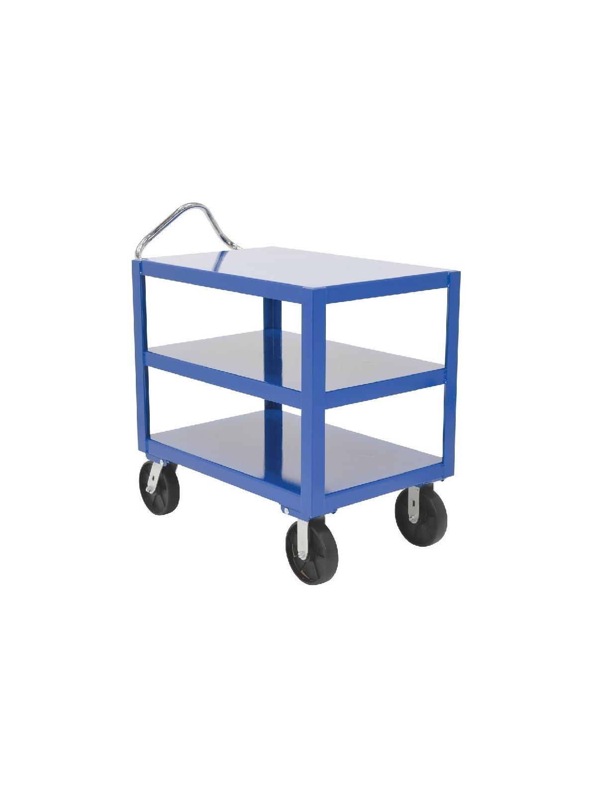 Constructed of heavy-duty steel to handle uniform loads up to 4,000 pounds. The patented ergonomic handle decreases fatigue by allowing the operator to easily maneuver the cart. Handle can be inverted for individual height comfort. Rolls on 8" x 2" casters, two (2) rigid and two (2) swivel with roller bearings. Many caster styles to choose from. Additional sizes available.  FOB Shipping Point.