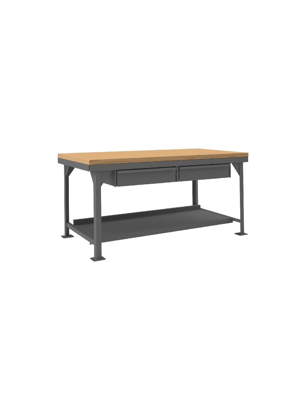 Products with top shelf risers used as shelf and back splash. See Related Items tab for Drawer for Durham Work Benches.