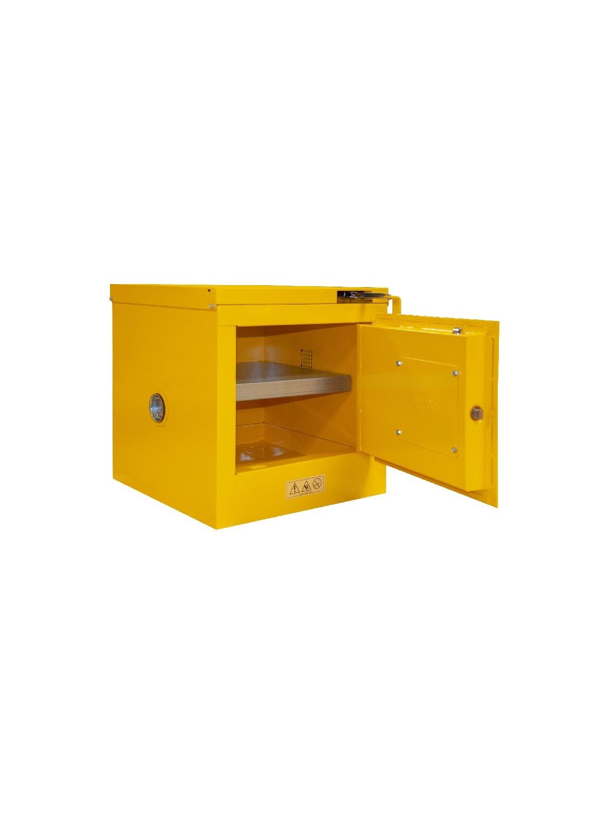 Flammable Storage Cabinets are required by OSHA and UFC in commercial and industrial facilities where flammable liquids are used and stored. Cabinets feature recessed lockable paddle latch and 3 point locking systems which greatly improves security. Bunged air vents on each side of the cabinet allows for greater ventilation. Constructed of all welded Heavy Duty Steel.