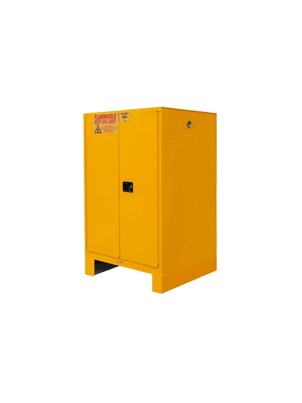 Flammable Storage Cabinets are required by OSHA and UFC in commercial and industrial facilities where flammable liquids are used and stored. Cabinets feature recessed lockable paddle latch and 3 point locking systems which greatly improves security. Bunged air vents on each side of the cabinet allows for greater ventilation. Constructed of all welded Heavy Duty Steel.