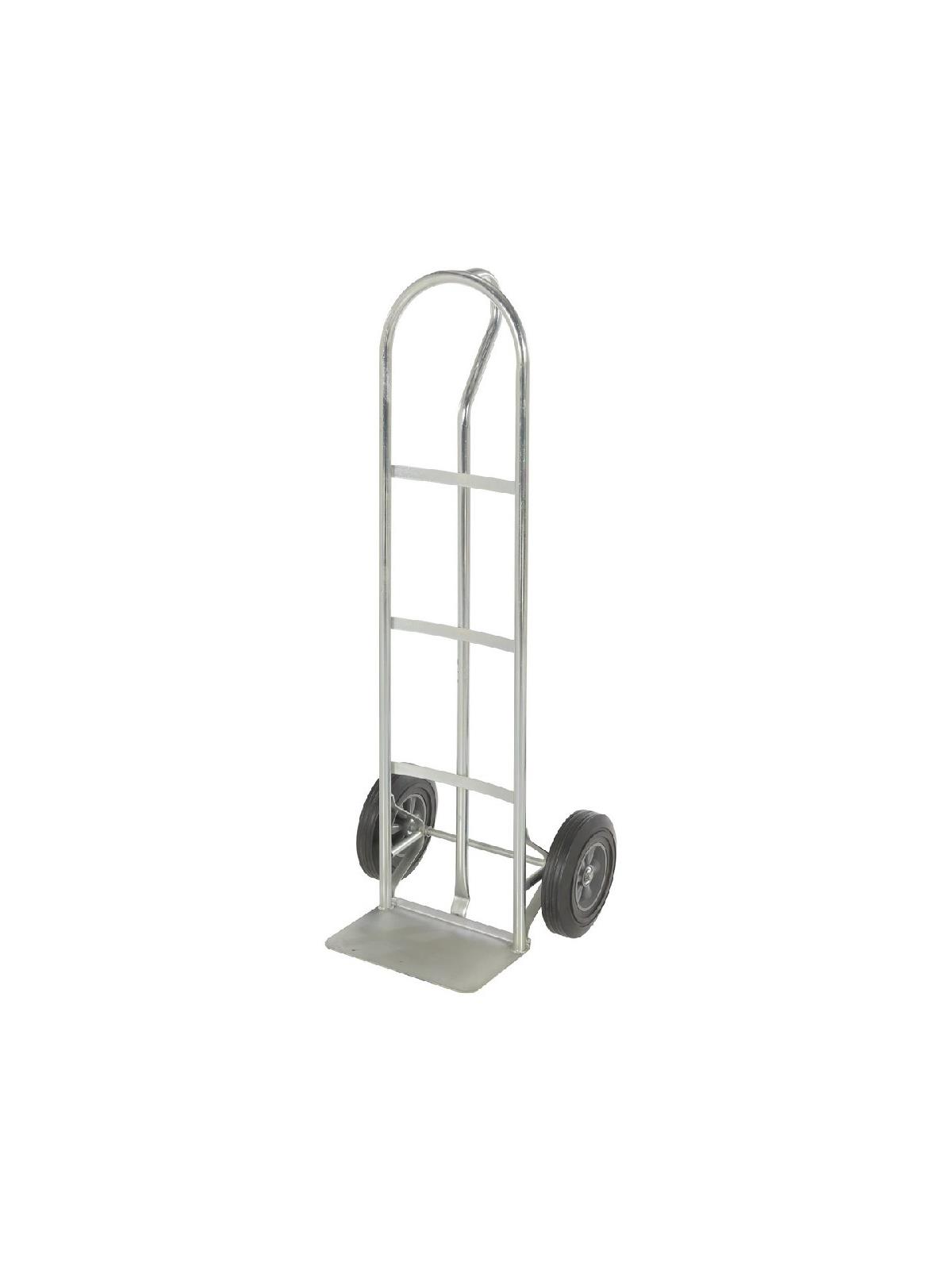 D) Heavy Duty Steel "P" Handle...great to free up your other hand to open doors or handle material. Easy to steer and maneuver. Handles loads up to 600 lbs.
