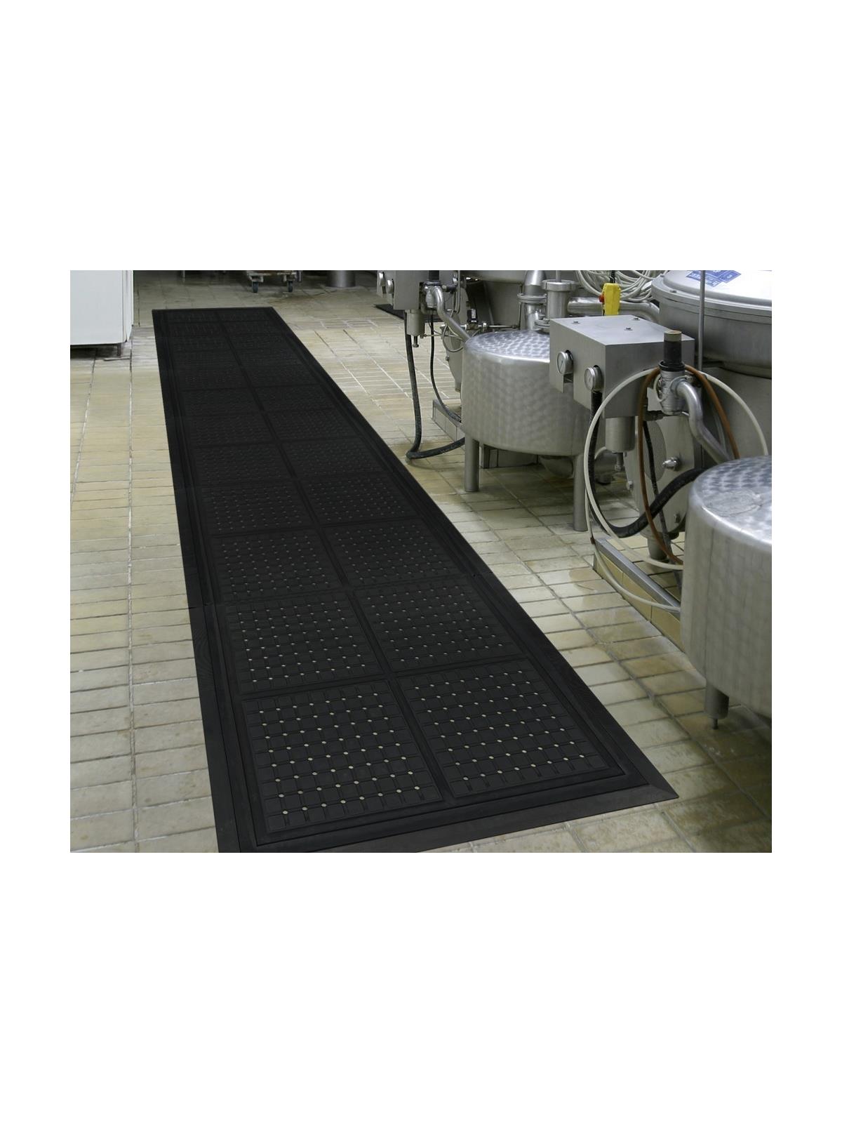 Safe - Drainage holes allow liquid to flow through; beveled edges provide a safe transition from floor to mat and will not crack or curl.