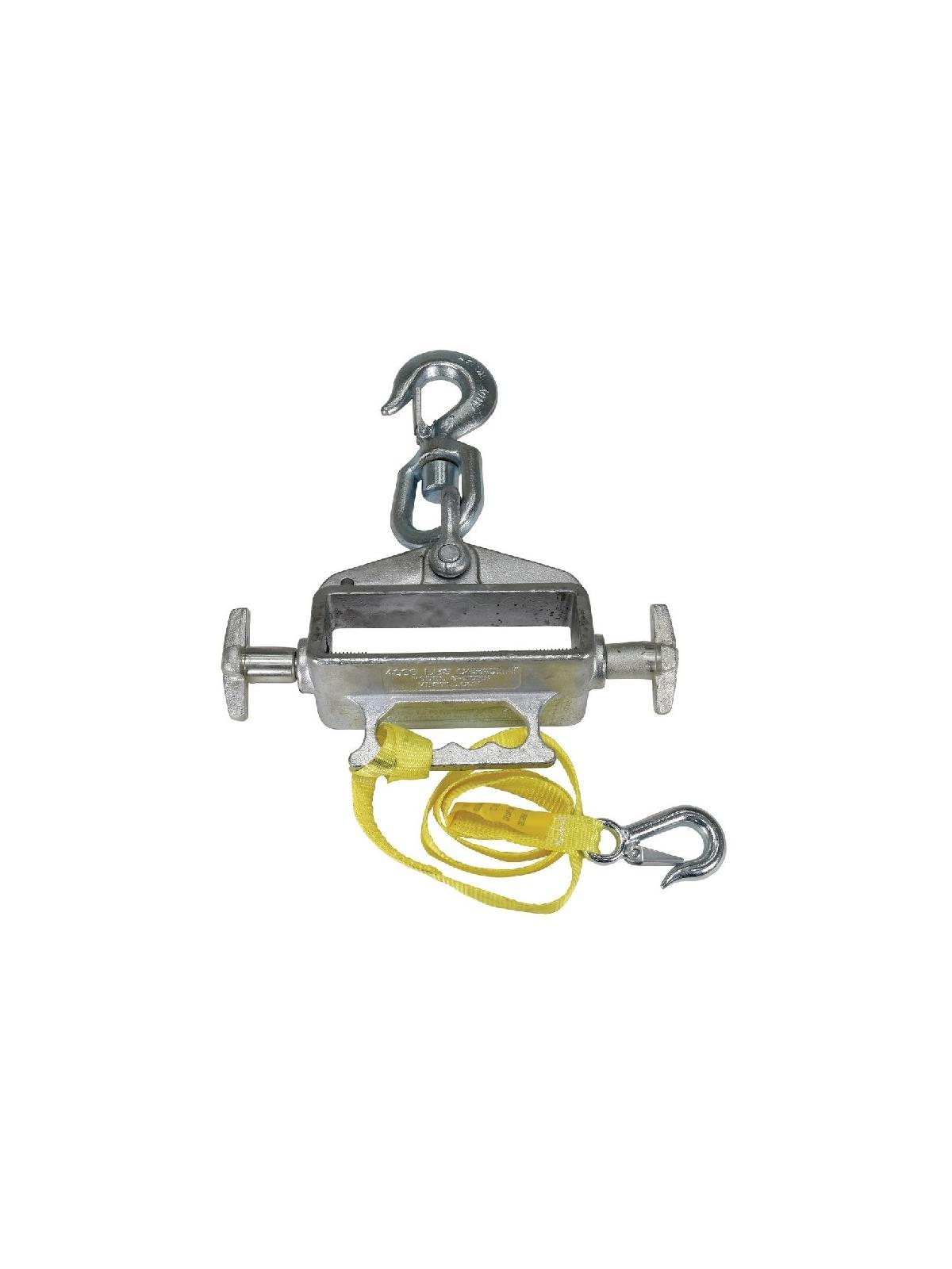 Easy to attach hoisting hook does not require special tools. Secured to the fork truck by means of a 48"L safety restraint and screw clamps. Available in single or double fork design. Both single and double attachments are zinc plated. Swivel or rigid hook with shackle included. FOB Shipping Point.