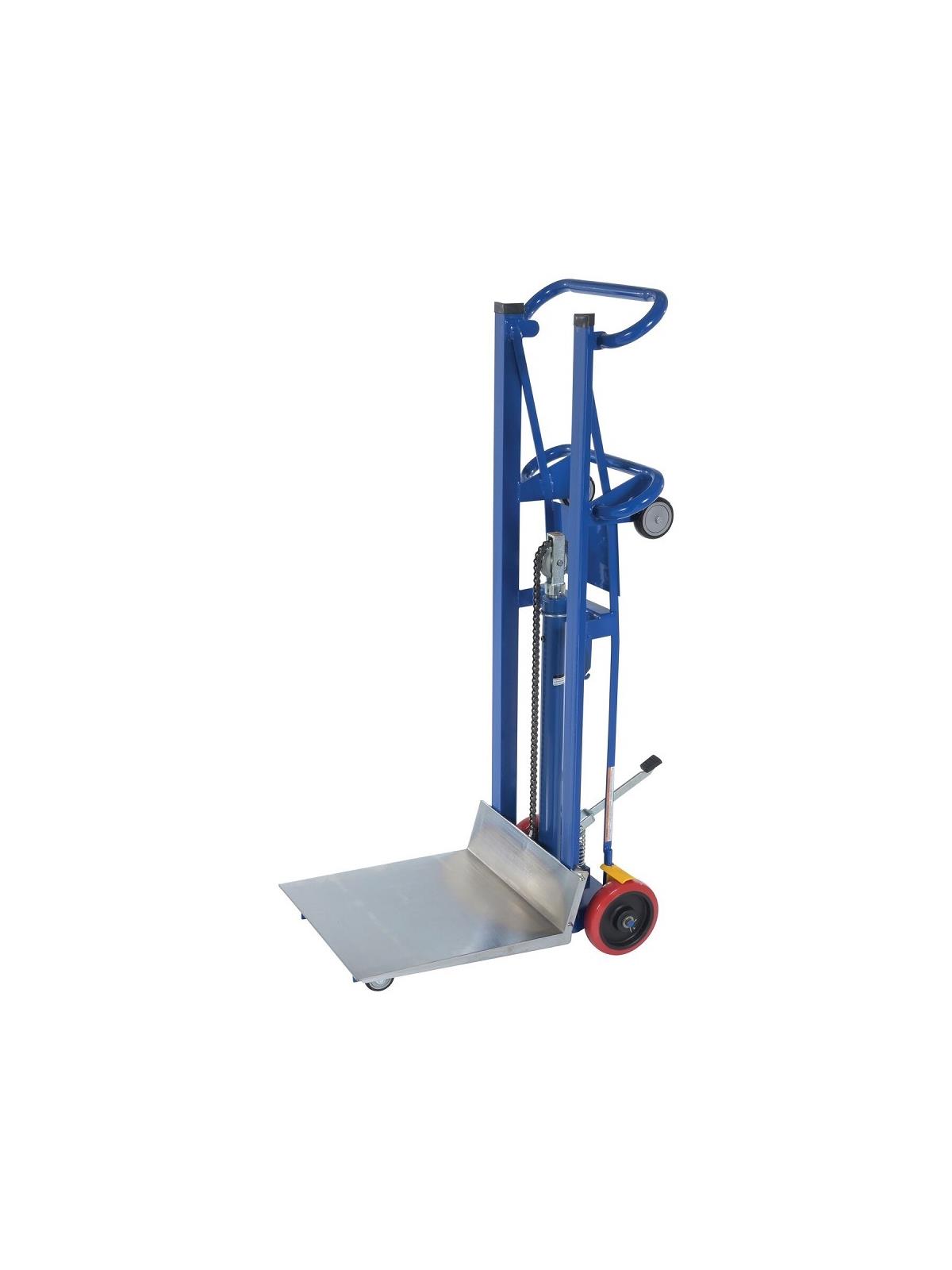 Upper wheels standard for loading into trucks. Safe, easy one person handling of loads up to 1000 lbs. Rugged steel construction for years of dependable service. Precision built hydraulic system is activated by easy action foot lever. FOB Shipping Point.