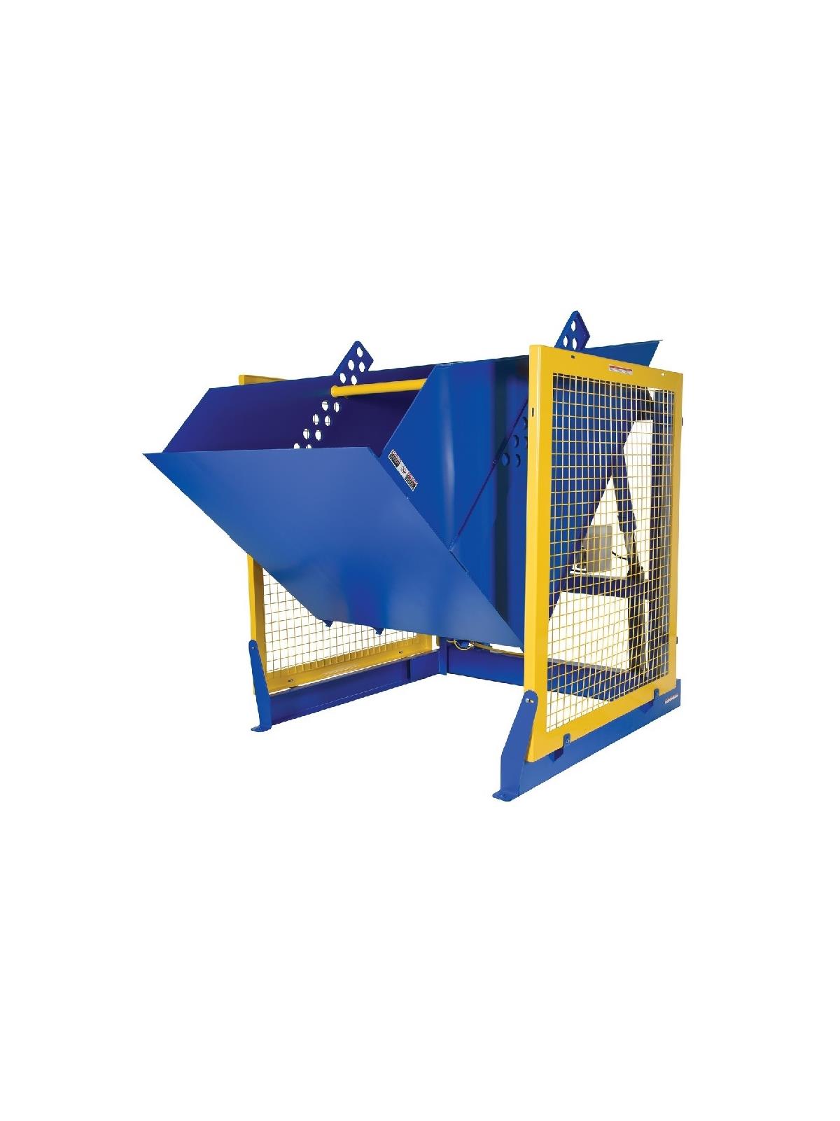 This ultimate dumper has advanced features from solid all welded steel construction to the Emergency Brass Velocity fuse in the cylinder. Main components include a 24V hand held pendant control, 56 frame motor, upper travel limit switch to reduce wear on the components. Safety features include: side rail guards, floor hold down brackets, adjustable hold down bar, 3,000 psi hydraulic component rating, integrated brass velocity fuse mounted inside the cylinder. Maximum rotation is 135°, yielding a 45° dump angle. Painted Royal Blue. FOB Shipping Point.