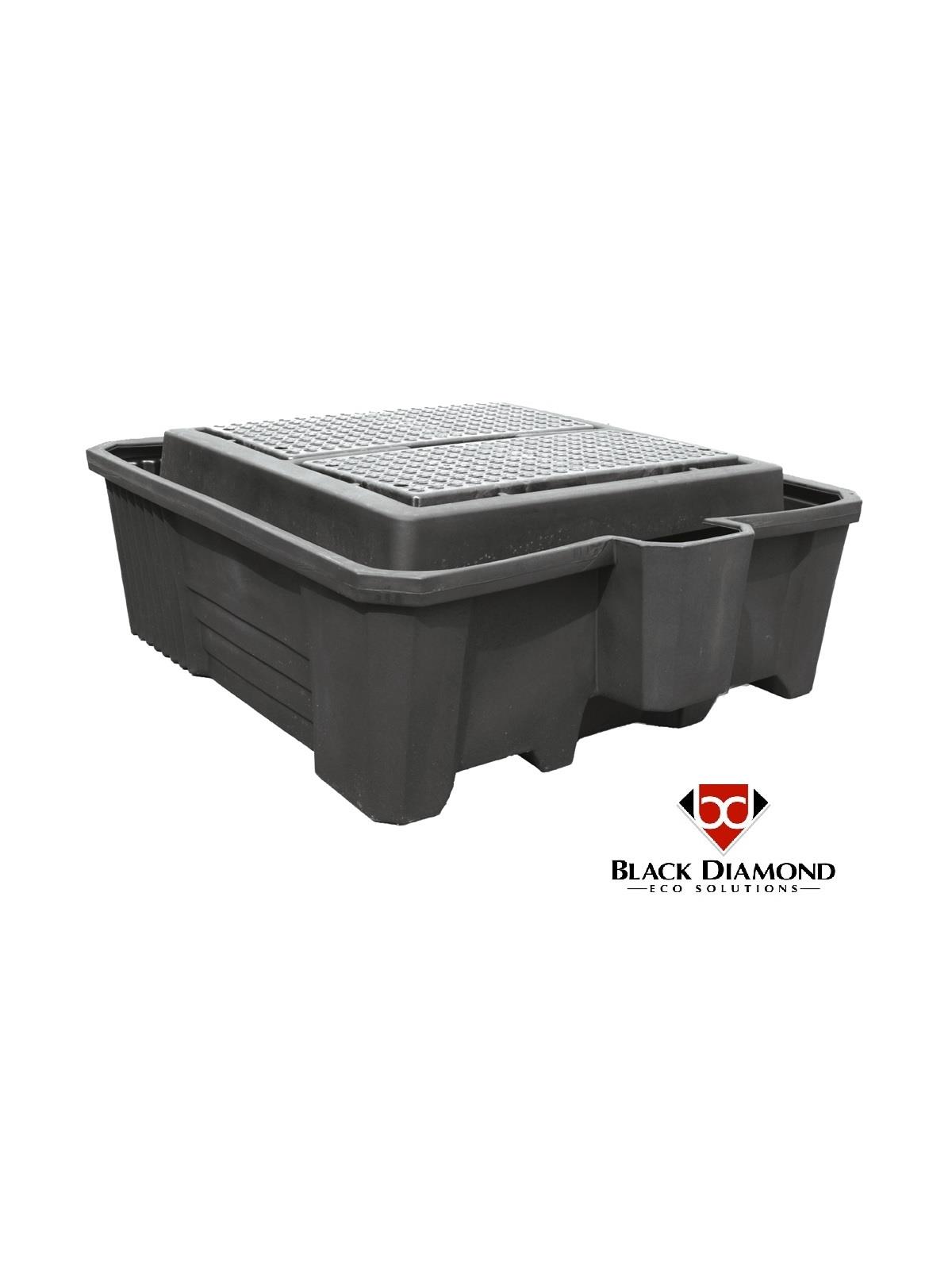 The Black Diamond and ENPAC IBC Pallets fit more than 99% of all IBC units and boasts a 385 gallon sump capacity. Featuring an integrated 5-gallon pail holder, this unit is the most economical, one-piece, polyethylene IBC Pallet on the market. FOB Shipping Point.