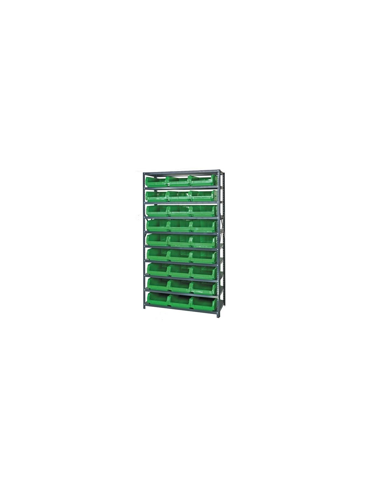 These ultra heavy-duty shelving systems incorporate Giant Hopper Bins. Five combinations solve any storage requirements. Bins offer optional clear window fronts as well as dividers for maximum storage capacity. Shelving is tough 42"W. with a 475 lb. capacity per shelf. Smooth powder coat finish won’t rust or corrode. Bins available in Blue, Yellow, Green, Red or Black. FOB Shipping Point.