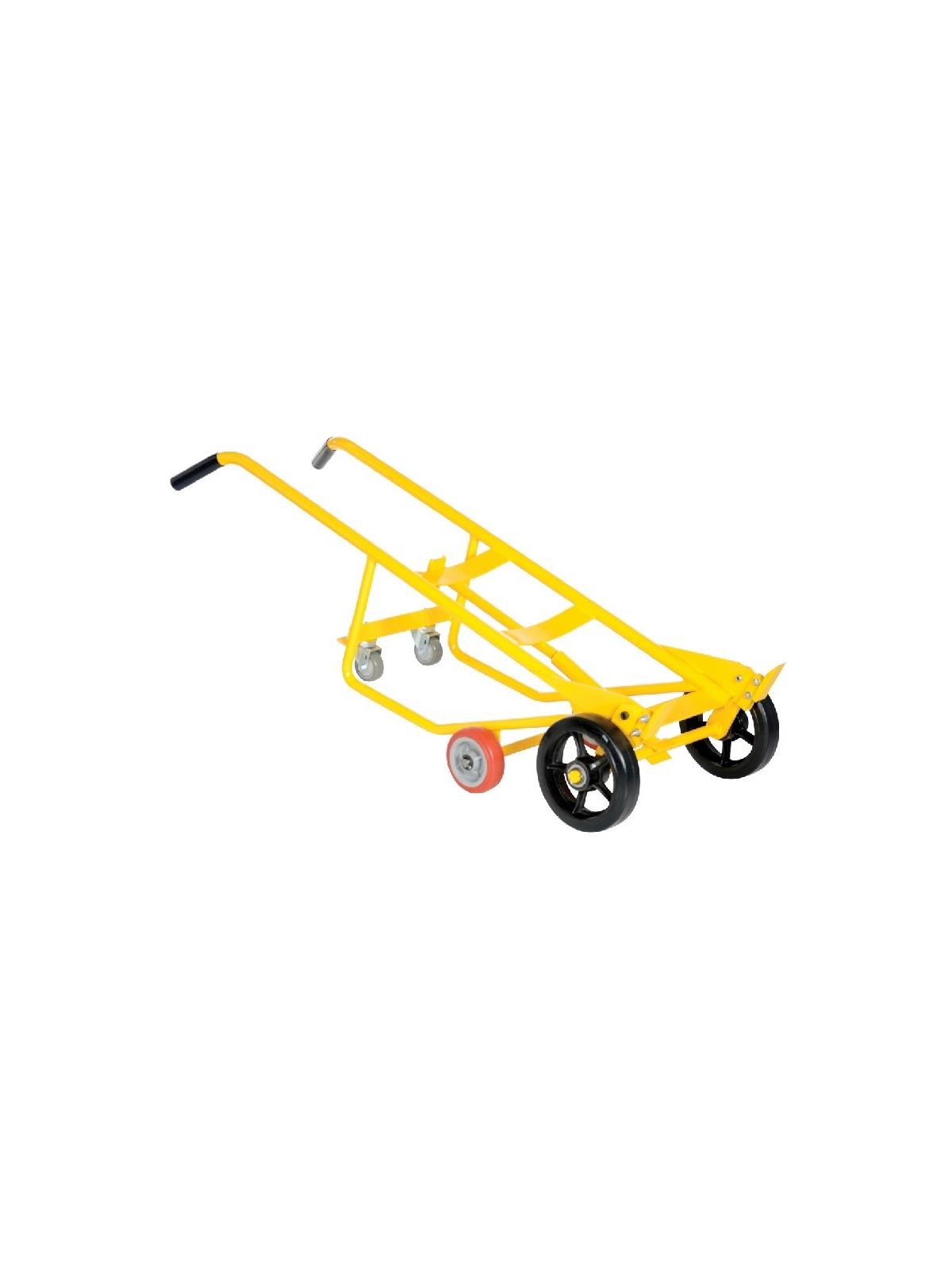 This innovative product allows the operator to easily tip back the truck in order to transport drums ergonomically on 4 wheels - and acts as a drum cradle for storage and dispensing all in one. Top angle is 3° when used as a Drum Cradle. This unique design also allows the operator to retrieve drums on and off the pallet. Accommodates 55 gallon steel, plastic or fiber drums. Rolls smoothly on (2) 10" x 2-1/2" wheels (see wheel description in chart), (2) 6" x 2" poly-on-poly wheels and (2) 3" x 1-1/4" poly-on-poly casters. Standard with a wheeled undercarriage that positions the drum horizontally for drainage or storage. An integral self-storing bung wrench is standard - opens numerous drums and helps keep the drum snug on the truck. Drum height is 12-13/16"H in the cradle position. Durable powder coat finish. FOB Shipping Point.