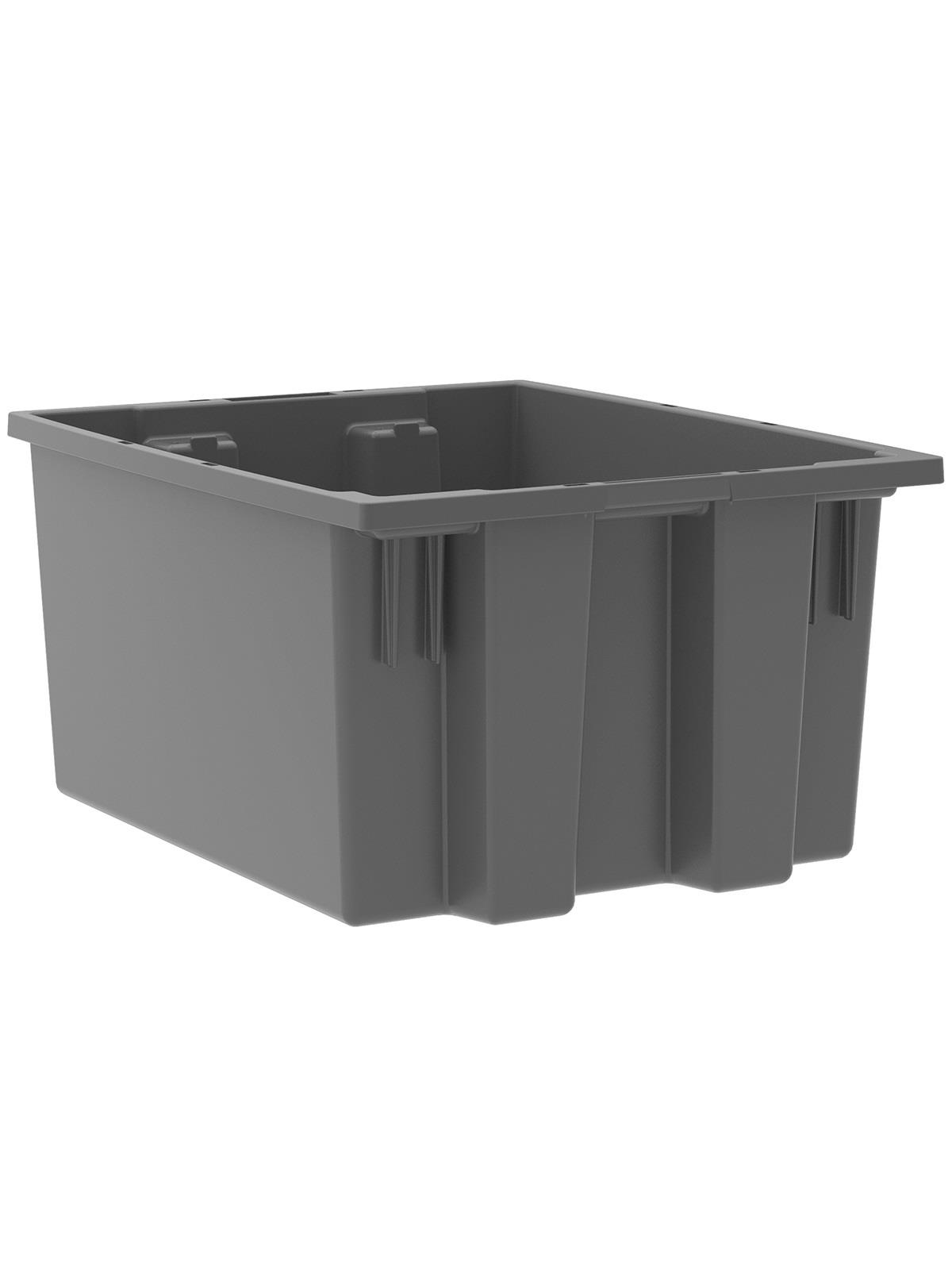Heavy-duty construction provides a superior service life resulting in lower replacement costs than “budget-priced” totes. Smooth surfaces are easy to clean and are resistant to most solvents and chemicals. Available optional lids protect contents from dust and damage. Stackable with or without lids for shipping. When empty and without lids, totes nest for space saving storage. Available in Red, Blue, or Gray. Gray totes manufactured from FDA-approved materials. FOB Shipping Point.