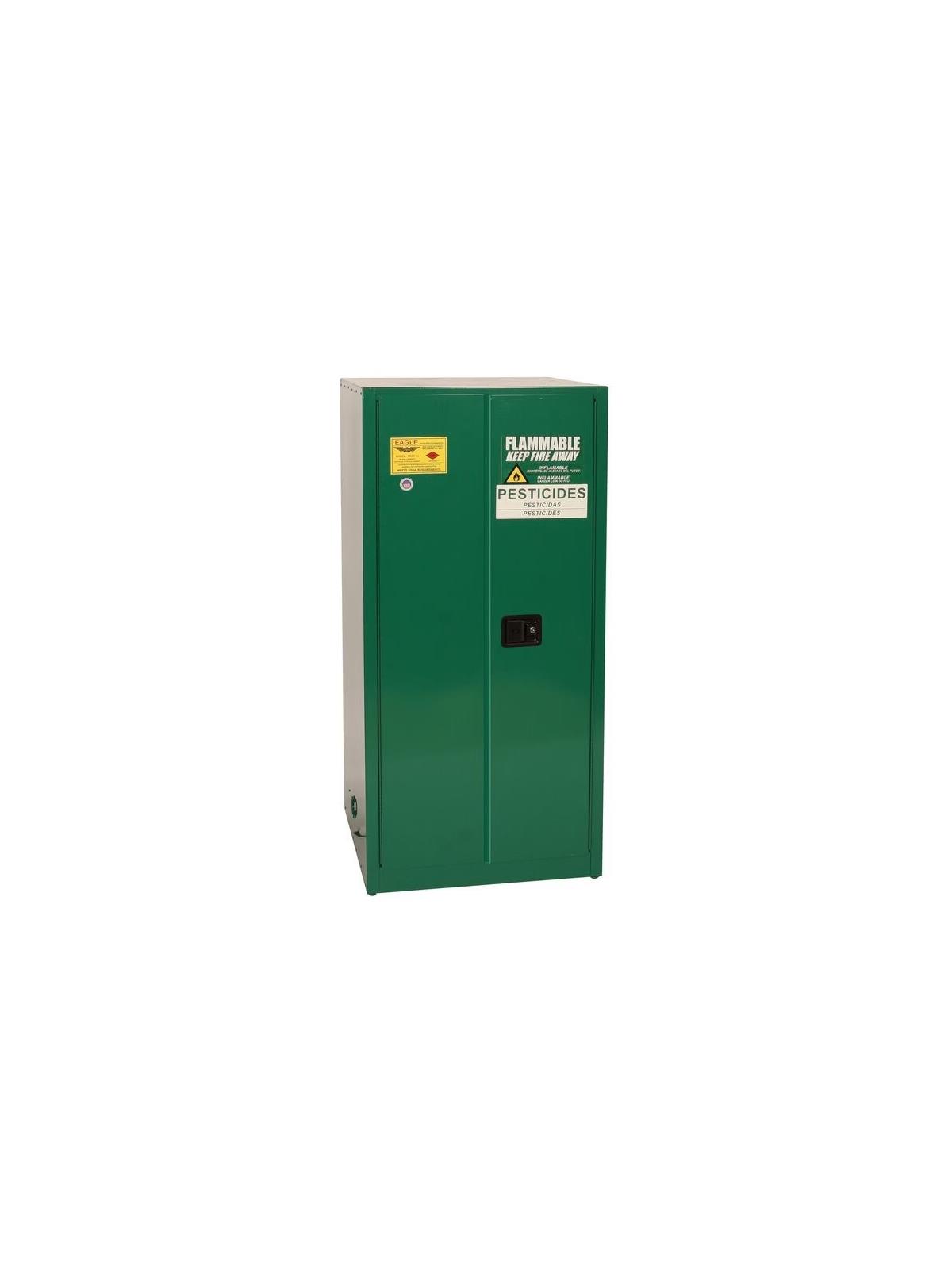 Eagle safety pesticide cabinets provide needed security for companies specializing in lawn care, golf course management, agricultural interests, and individuals who handle and store pesticides and poisons. The pesticide safety cabinets are constructed of 18-gauge steel and feature reinforced double-wall construction with air space on sides, top, bottom, back, and doors. The cabinets are coated with a lead-free, high gloss, baked-on powder finish for superior protection against chemical corrosion with large FLAMMABLE- KEEP FIRE AWAY and pesticide labels. All of our durable pesticide cabinets are FM-Approved and meet NFPA Code 30 and OSHA requirements. FOB Shipping Point.
