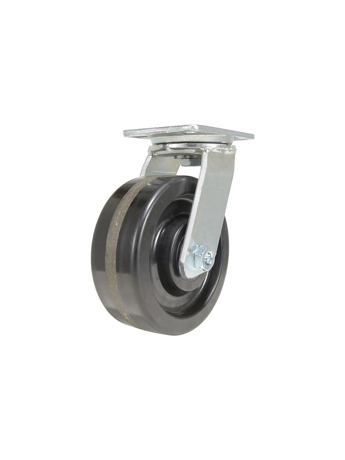 Phenolic wheels have a high resistance to impact damage, while providing protection for floors in commercial and industrial settings. Resistant to water, oil and grease. It is also spark resistant and operates in a wide temperature range. Black tread color. Wheel core is phenolic. 100 Shore A. FOB Shipping Point.