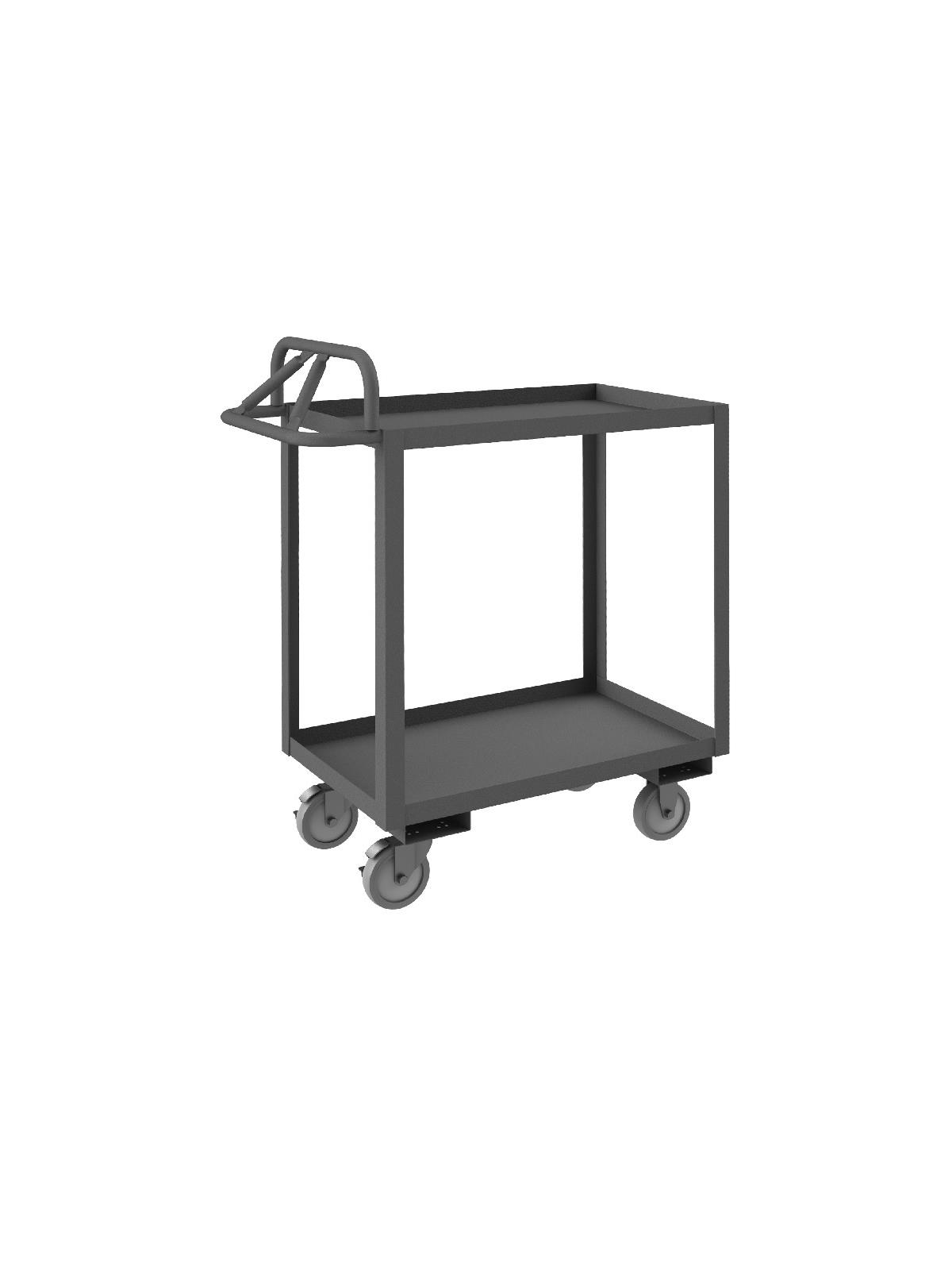 Constructed with 1-1/2" x 1/8" angle iron uprights for added strength. Heavy duty 14 gauge steel shelves. Sturdy, tubular, ergonomic handle has 3 positions ensuring maximum comfort. Standard units have 1-1/2" lips. ALD units have all lips down, TLD units have top lips down. Durable, gray, textured powder coat finish. FOB Shipping Point.