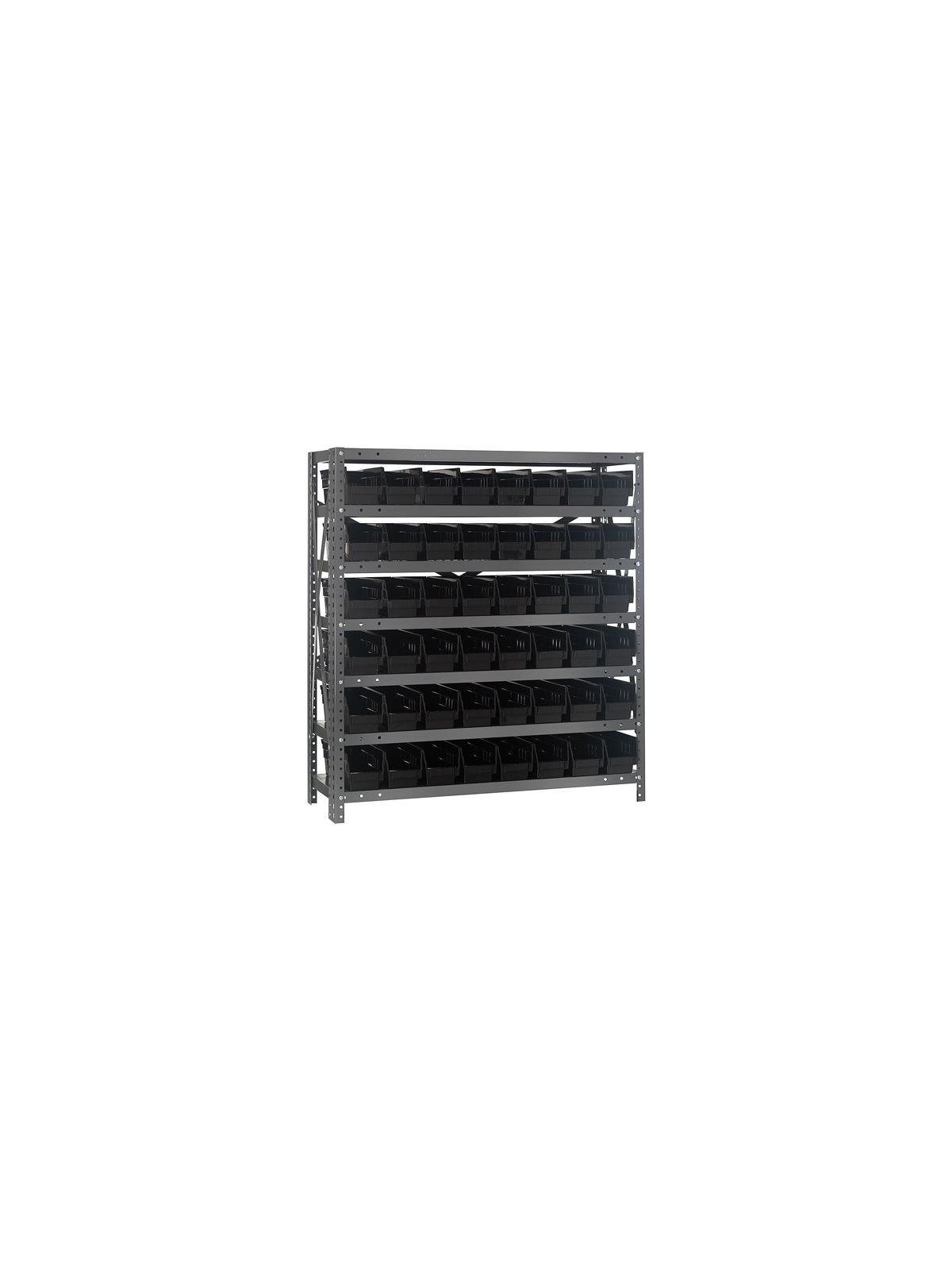 Rugged 350 lb. capacity per shelf, standard shelving unit will keep parts organized and readily accessible. Gray enamel finish will not rust or corrode. 12-HQSB100, 8-HQSB101, 5-HQSB102, 4-HQSB107, 3-HQSB109 fit across a standard 36"W x 12"D shelf. 8-HQSB103, 5-HQSB104, 4-HQSB108, 3-HQSB110 fit across a 36"W x 18"D shelf. Bins are available in Blue, Yellow, Red, Green, Ivory or Black. FOB Shipping Point.