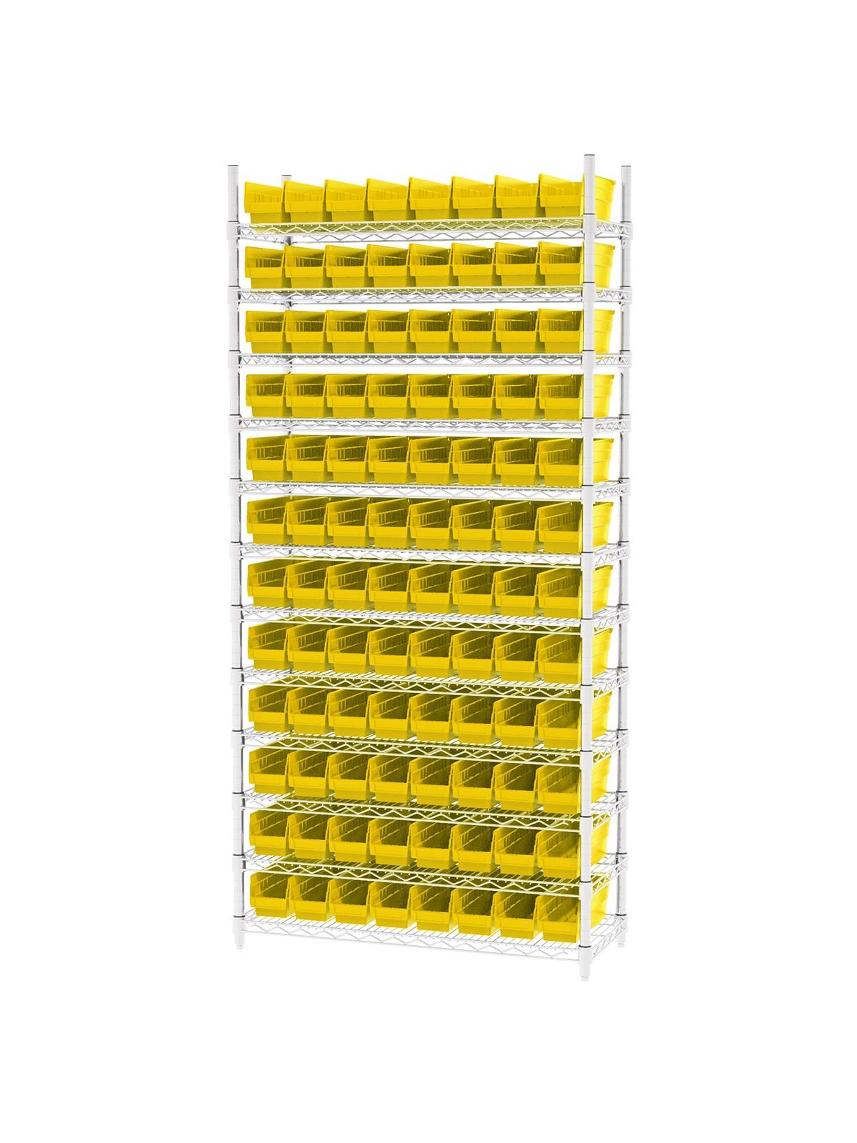 Shelf Bin Wire Systems can be configured for use with 36, 48, 60 or 96 bins providing a versatile system for storage and material handling. Durable and strong polypropylene shelf bins outlast corrugated bins. Bins available in Blue, Red, Yellow, or Semi-Clear. FOB Shipping Point.
