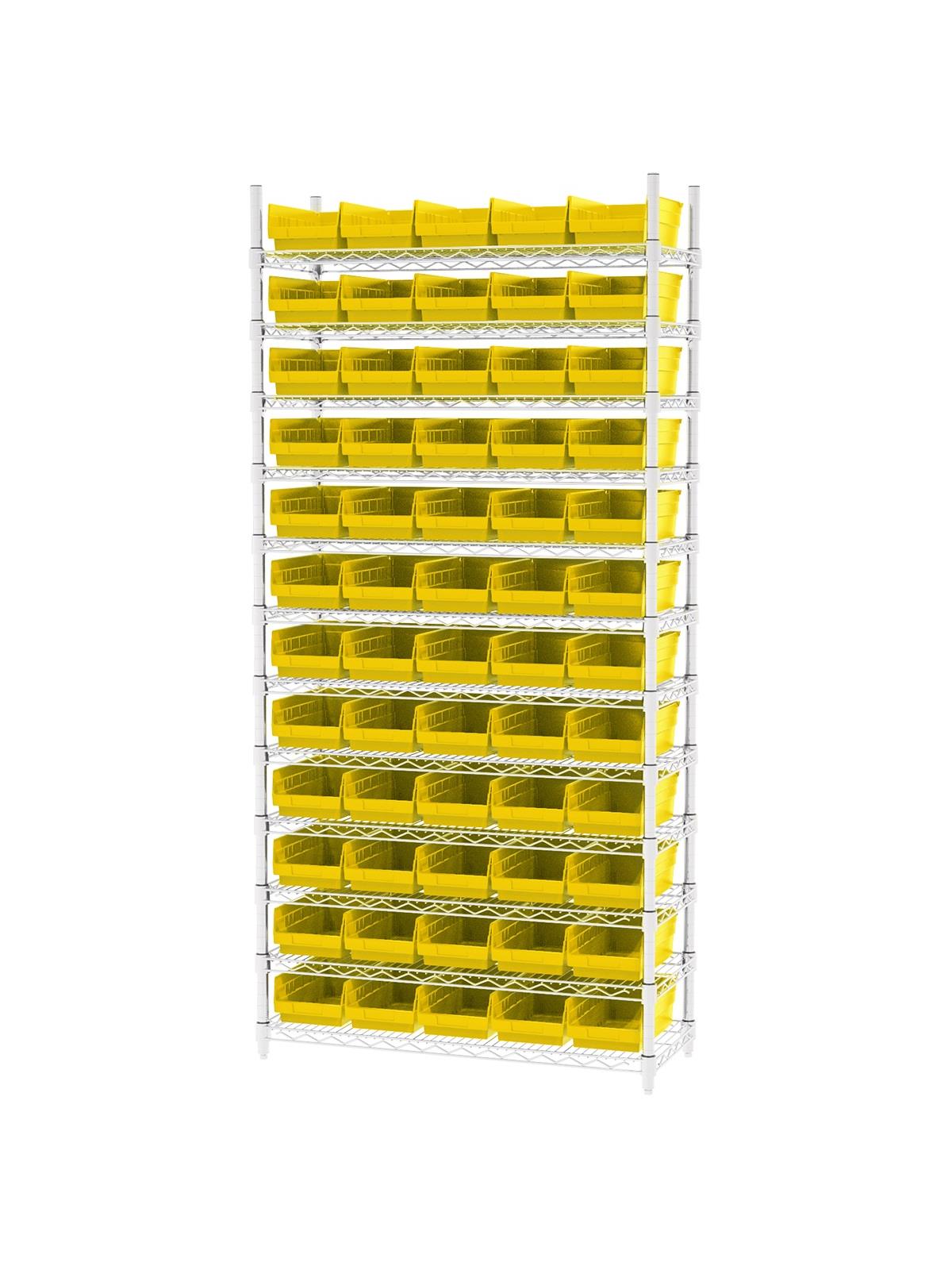 Shelf Bin Wire Systems can be configured for use with 36, 48, 60 or 96 bins providing a versatile system for storage and material handling. Durable and strong polypropylene shelf bins outlast corrugated bins. Bins available in Blue, Red, Yellow, or Semi-Clear. FOB Shipping Point.