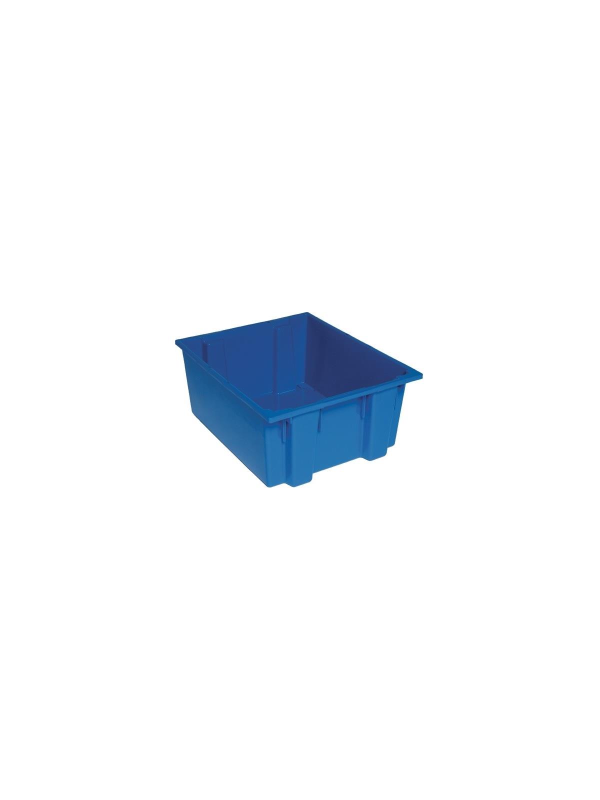 High density polypropylene, injection molded for uniform wall thickness and added strength. Lids snap tightly and securely for a safe fit. Quick 180° turn offers space-saving stacking and nesting. Stacks 6 high. Fits 48" x 40" pallets (6 SNT190, 4 SNT230 per level). Usable in temperatures from -­10° to 250°F. Available in Gray, Blue, Red or Clear. Optional clear, see-thru Stack and Nest Label Holder (HSNH010) and optional Dolly (HDLY-3018) available. FOB Shipping Point.